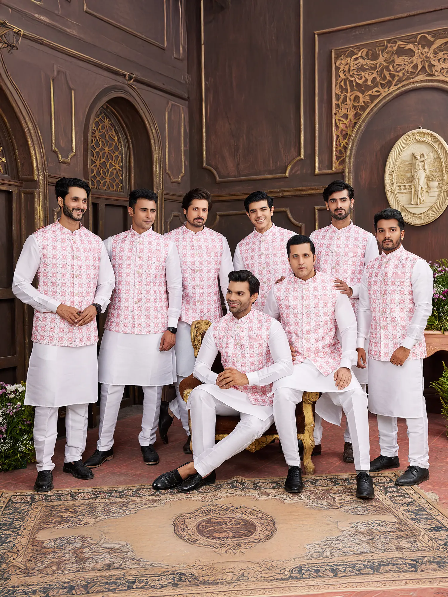 Men's Classic Mandarin Collar Attractive Jacquard Silk Brocade Kurta With Pajama