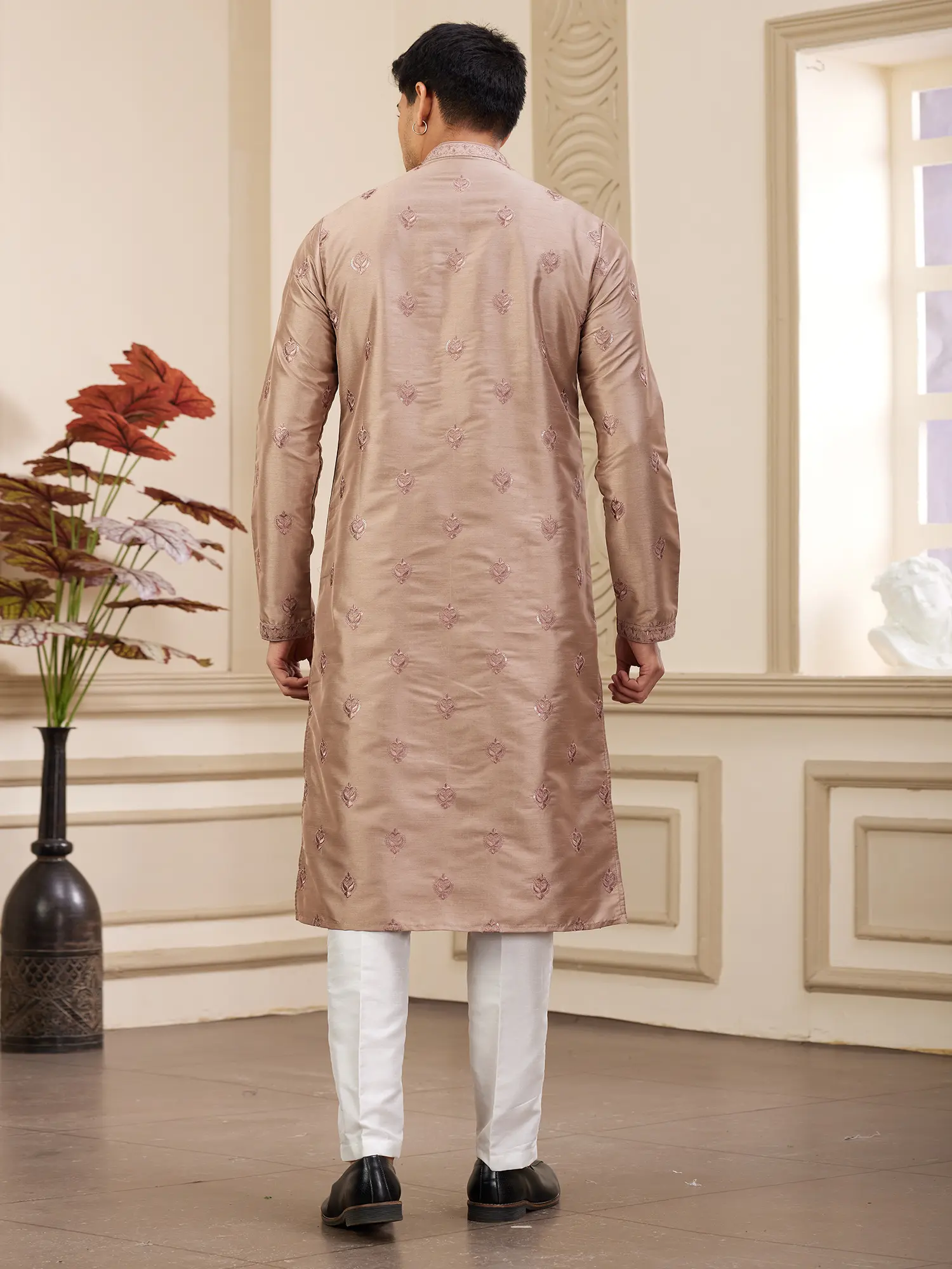 Complete your look with traditional footwear like juttis or mojaris to enhance the ethnic charm. A classic wristwatch and a simple bracelet can add a touch of personal style without overpowering the outfit. Whether you're attending a grand celebration or a more intimate gathering, this kurta pajama set will ensure you look your best. This piece is designed to make you feel confident and stylish, embodying the spirit of timeless elegance.