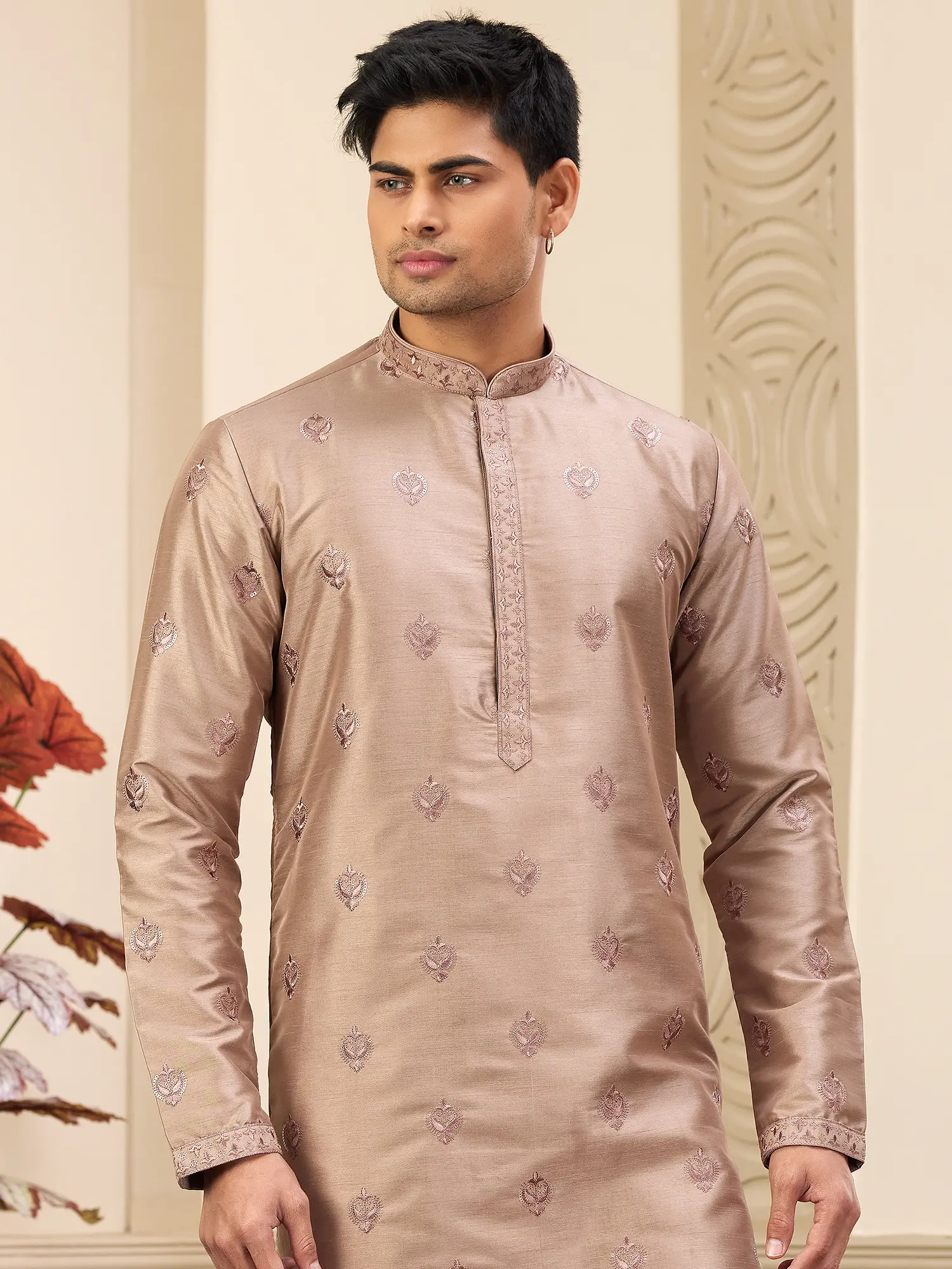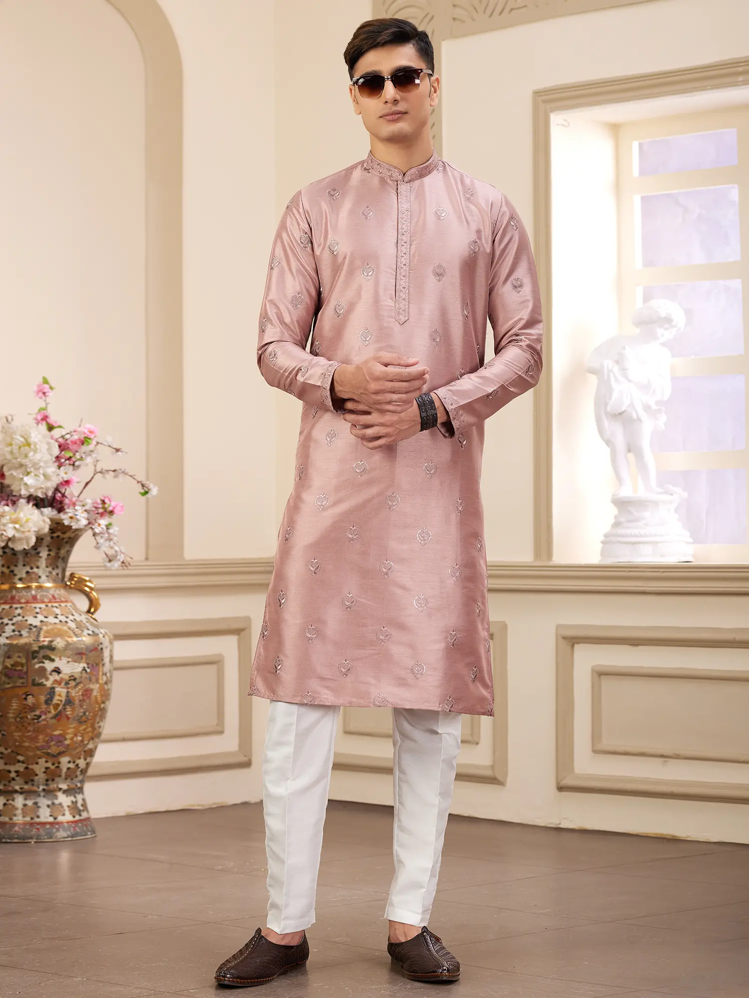Complete your look with traditional footwear like juttis or mojaris to enhance the ethnic charm. A classic wristwatch and a simple bracelet can add a touch of personal style without overpowering the outfit. Whether you're attending a grand celebration or a more intimate gathering, this kurta pajama set will ensure you look your best. This piece is designed to make you feel confident and stylish, embodying the spirit of timeless elegance.