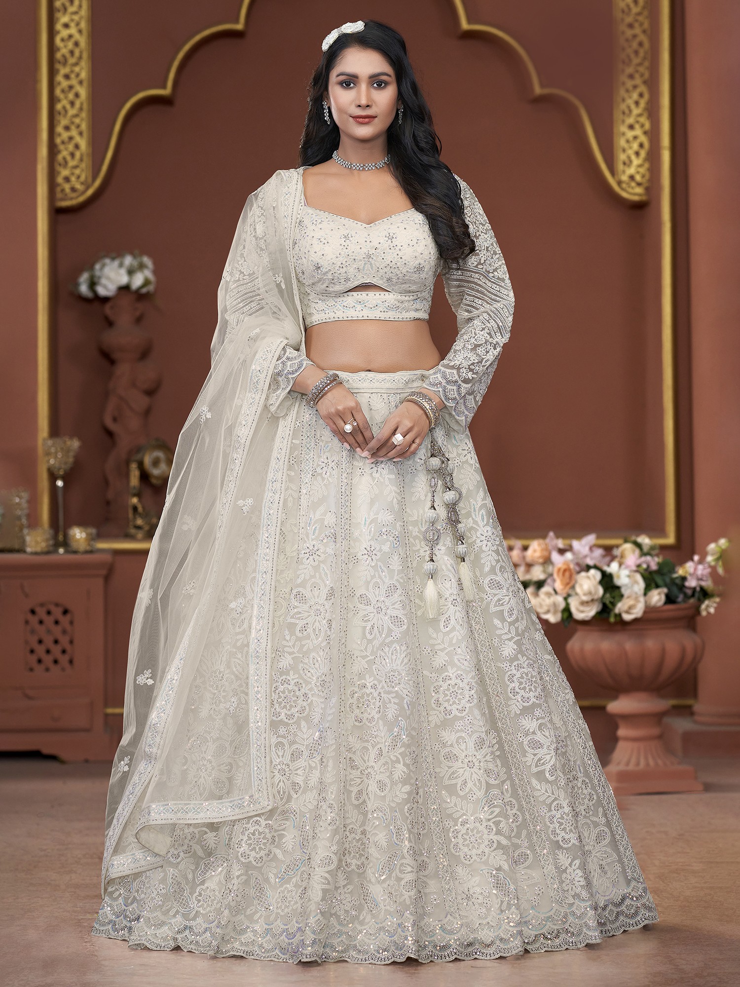 Elegant Premium Net Heavy Zarkan And Embroidery Work Lehenga Choli With Tassels And Dupatta