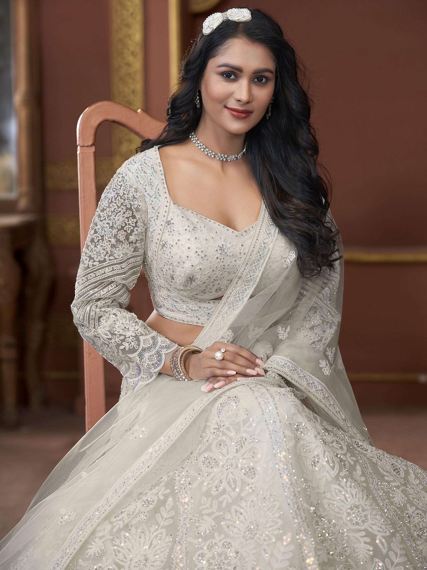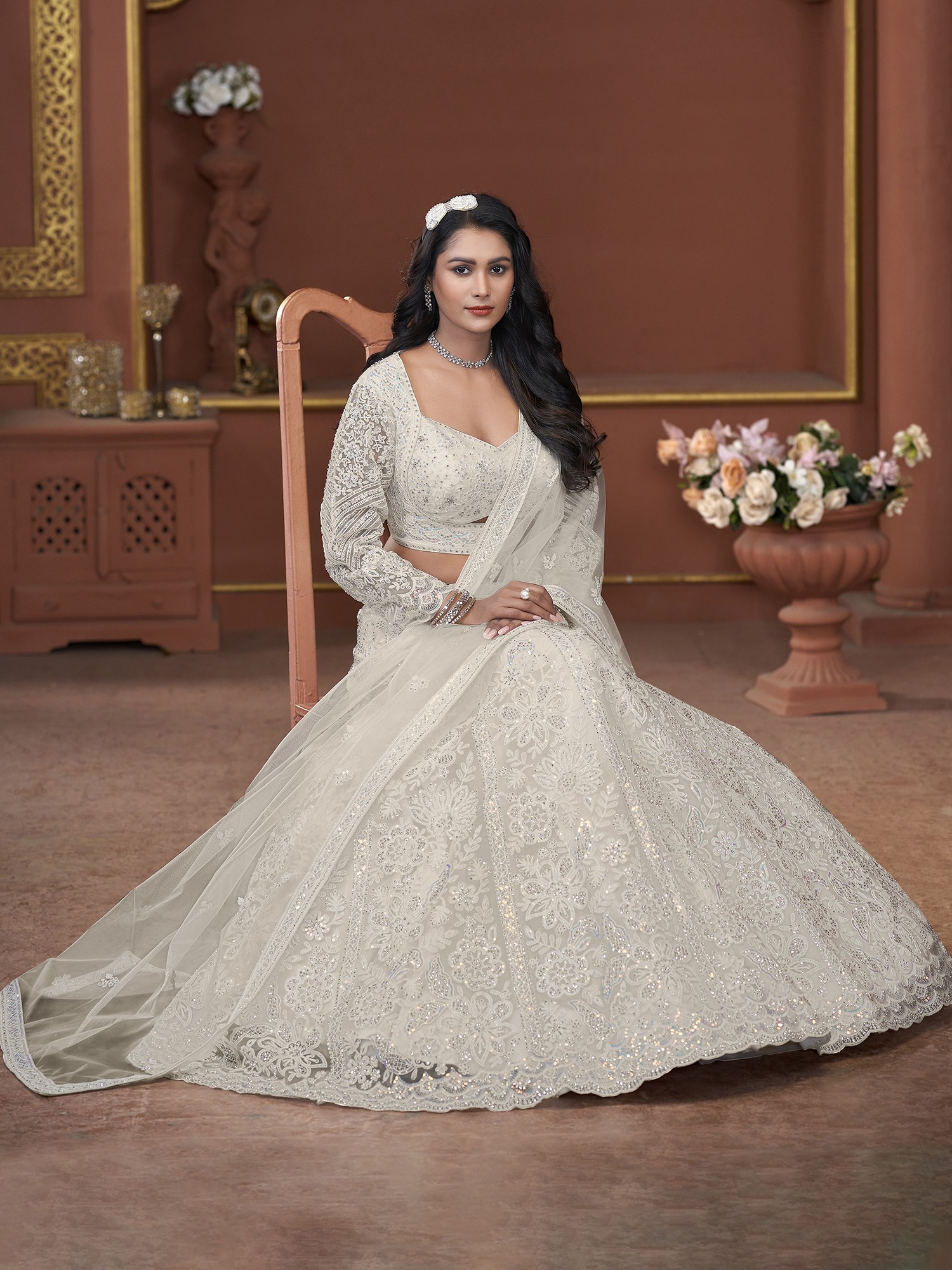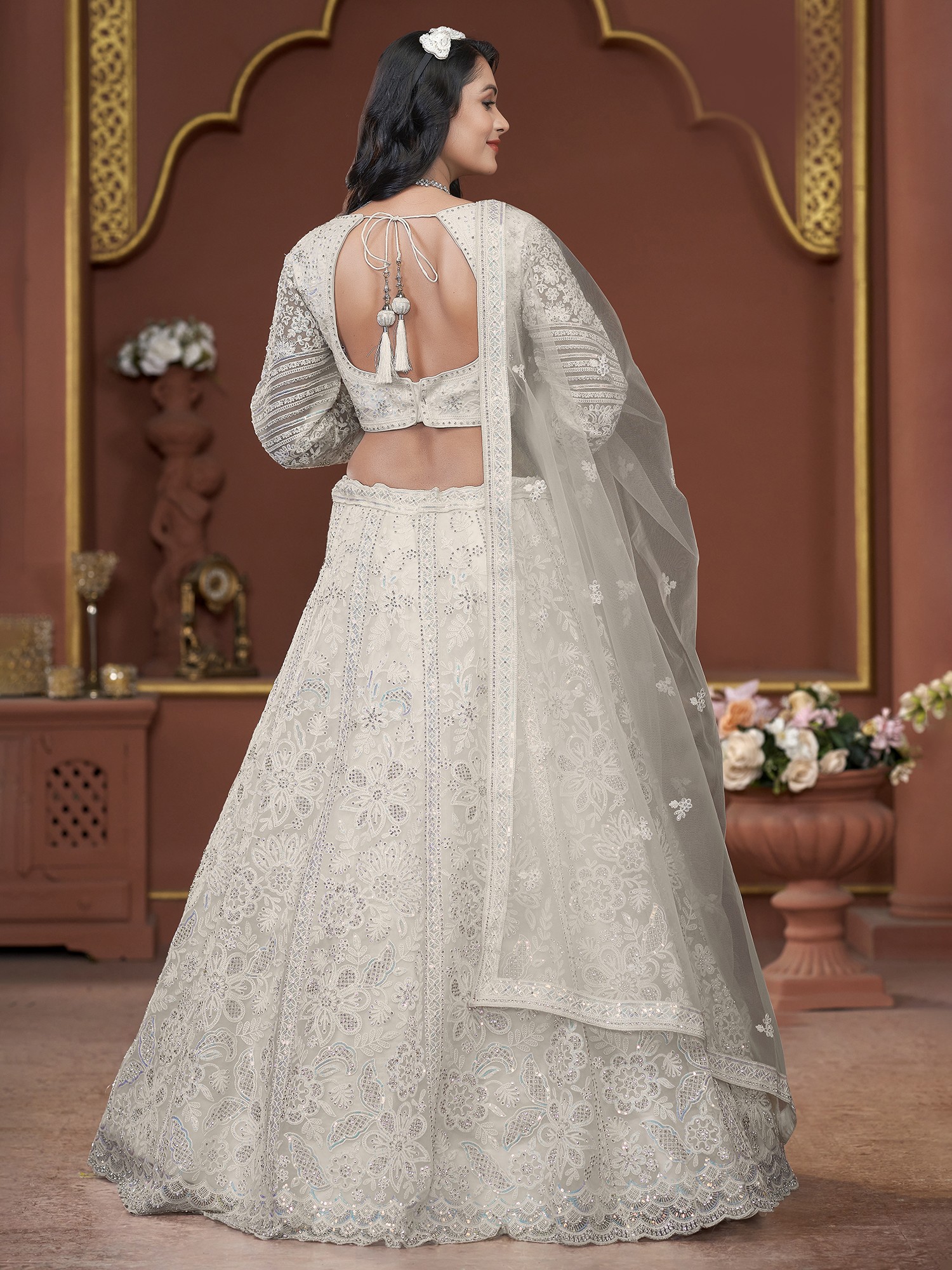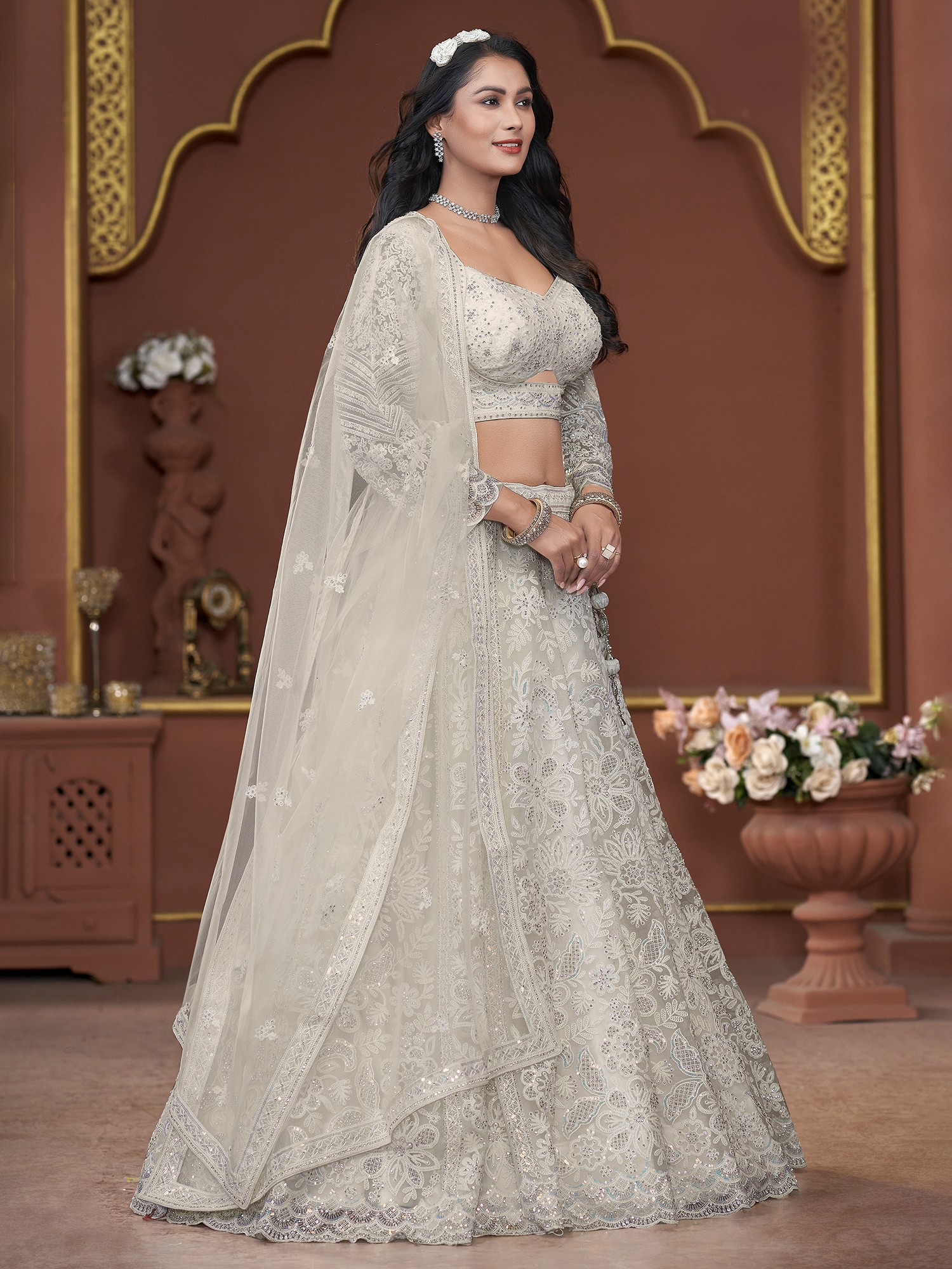 Georgette Floral Mughal Pattern Lehenga Choli with Dori-Thread-Zarkan Work and Soft Net Designer Dupatta