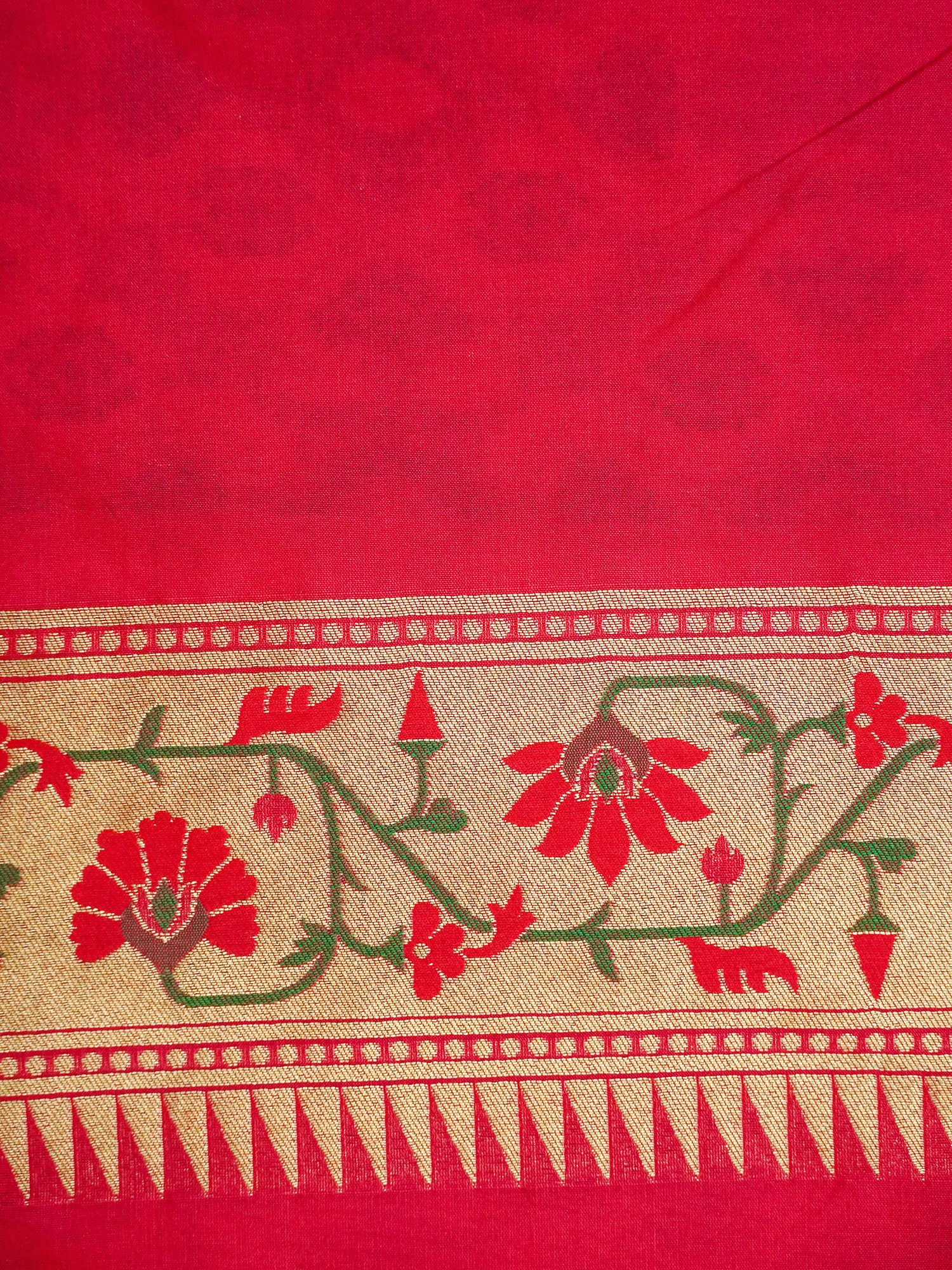 When the weaving of the saree is completed, it is made ready to be sent out for sale. Extra or loose threads are cut to make the saree flawless.