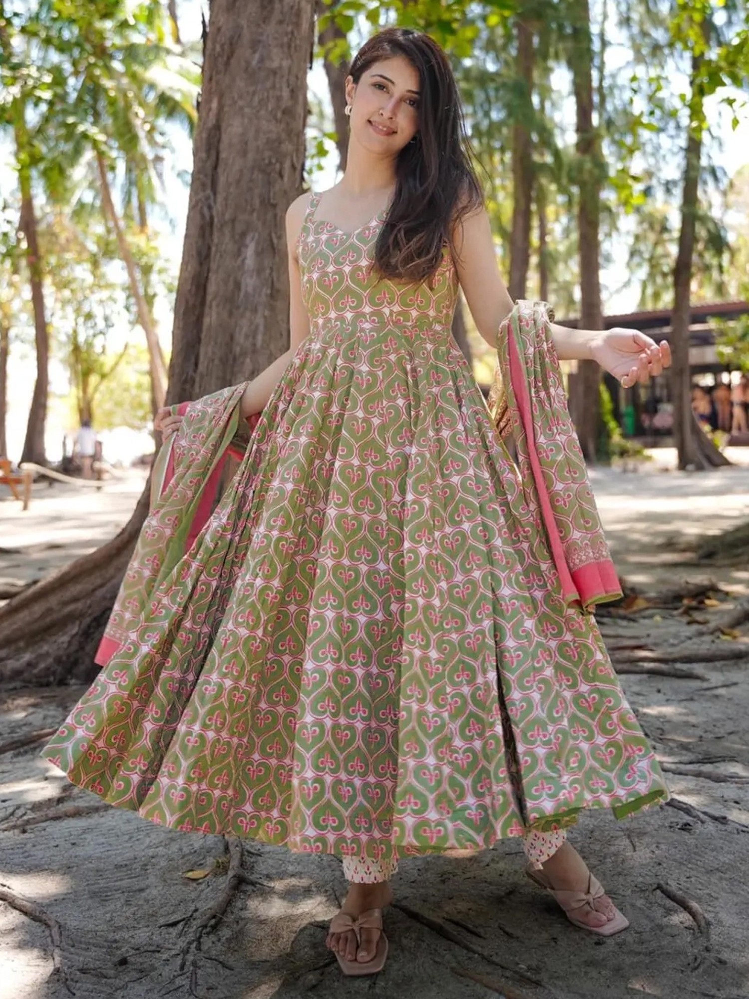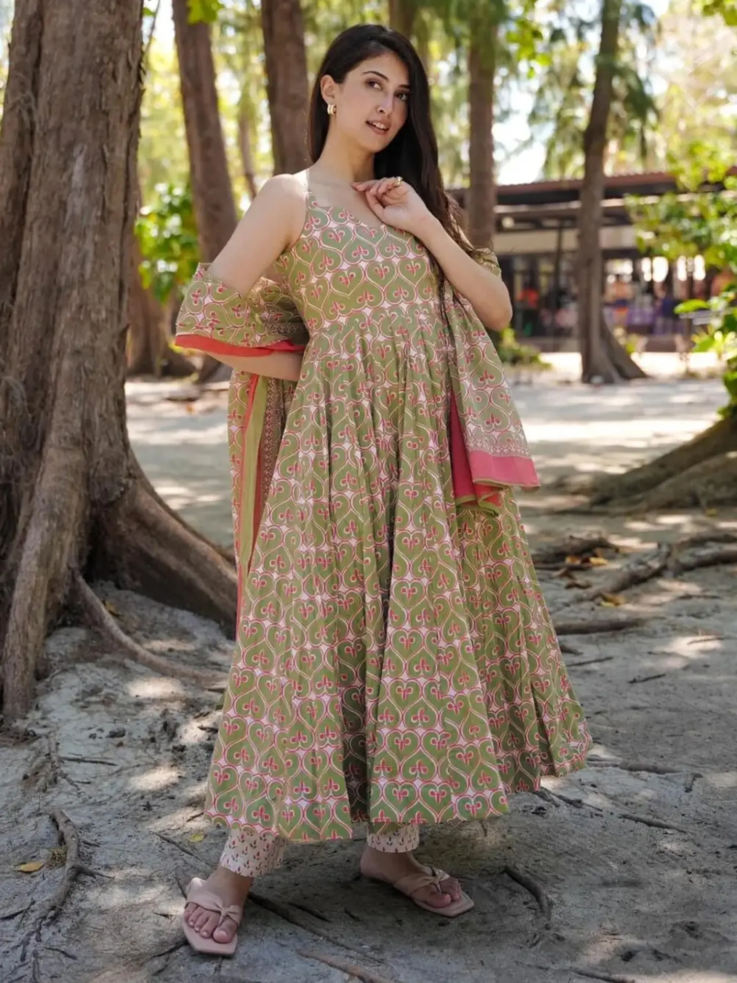 Peach-Blossom Anarkali Suit with Antique Beadwork and Sequins