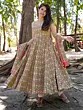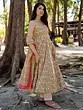 Caramel Anarkali Churidar Long Kameez Suit with Patchwork and Faux Pearls