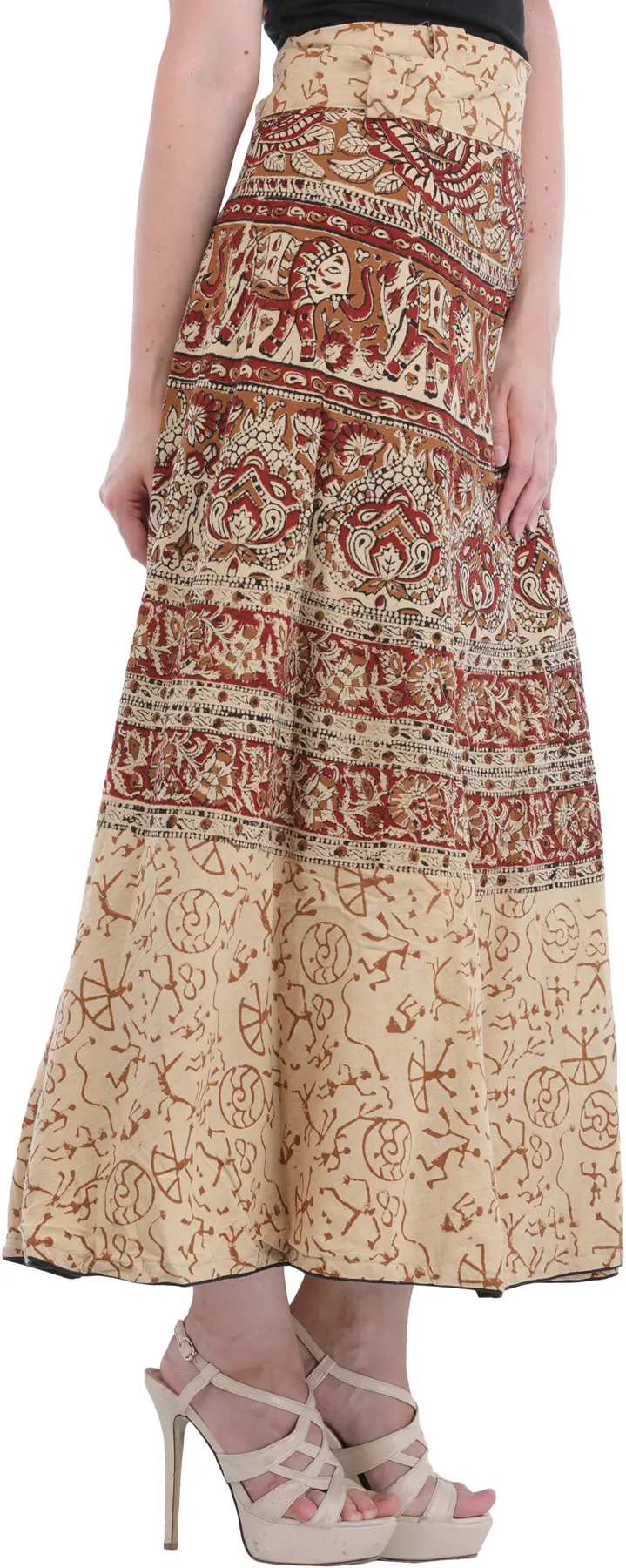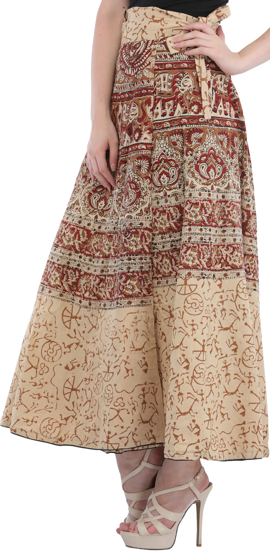 Wrap-Around Long Skirt from Pilkhuwa with Printed Paisleys and Elephants