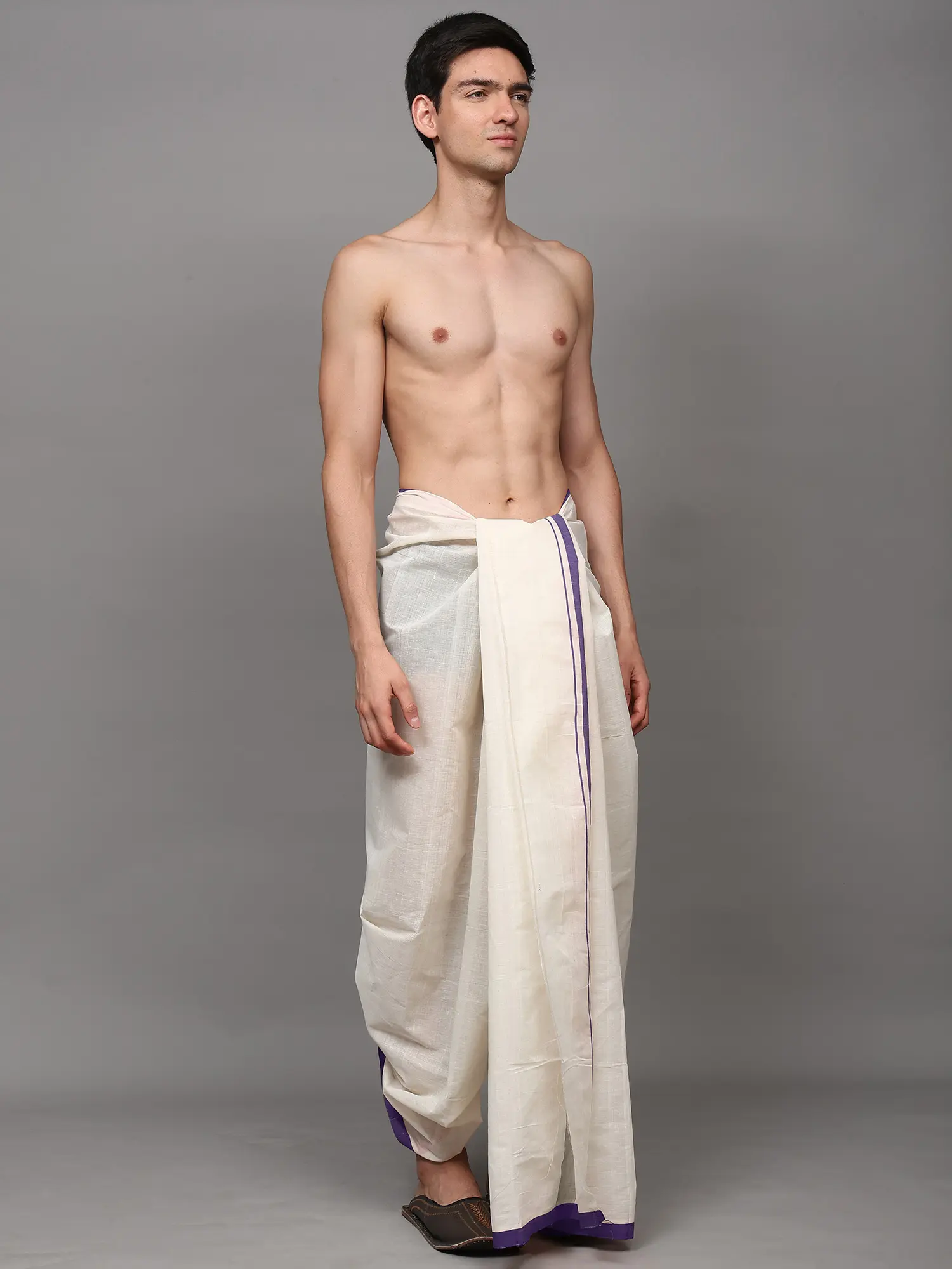 Traditional Dhoti and Angavastram set for Puja with Golden Thread Weave