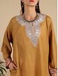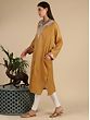 Wrap yourself in exquisite warmth and style with our apple cinnamon pure wool phiran adorned with patch tila paisley silver butta embroidery on the neck, straight from Kashmir. Meticulously crafted, this phiran combines traditional elegance with modern flair. Made from luxurious pure wool, it offers unparalleled comfort and insulation against the cold. The intricate silver butta embroidery adds a touch of opulence, while the apple cinnamon hue adds warmth to your winter wardrobe.