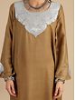 Introducing our Apple-Cinnamon Pure Wool Phiran from Kashmir, adorned with intricate Tilla Silver Metallic Thread Embroidery. Crafted with meticulous attention to detail, this Phiran embodies the essence of Kashmiri tradition and elegance. The rich apple-cinnamon hue of the wool fabric exudes warmth and sophistication, while the shimmering silver metallic thread embroidery adds a touch of opulence and glamour.