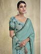 Aqua-Blue Crepe Silk Floral Embroidered Border Saree with Georgette Silk Blouse and Tassel Pallu