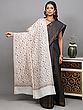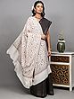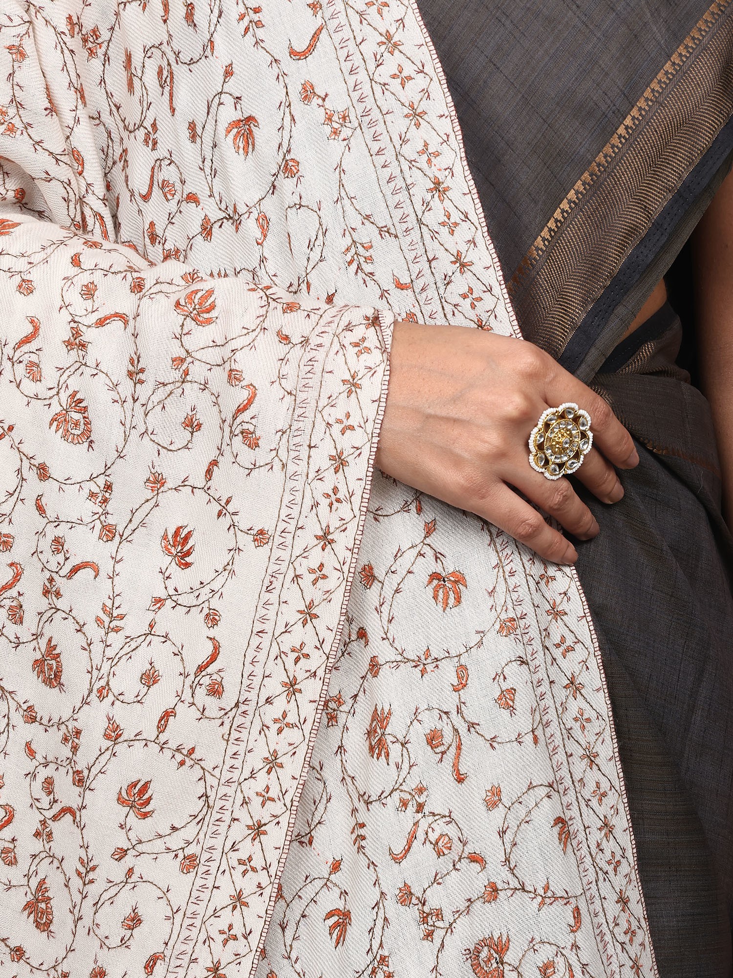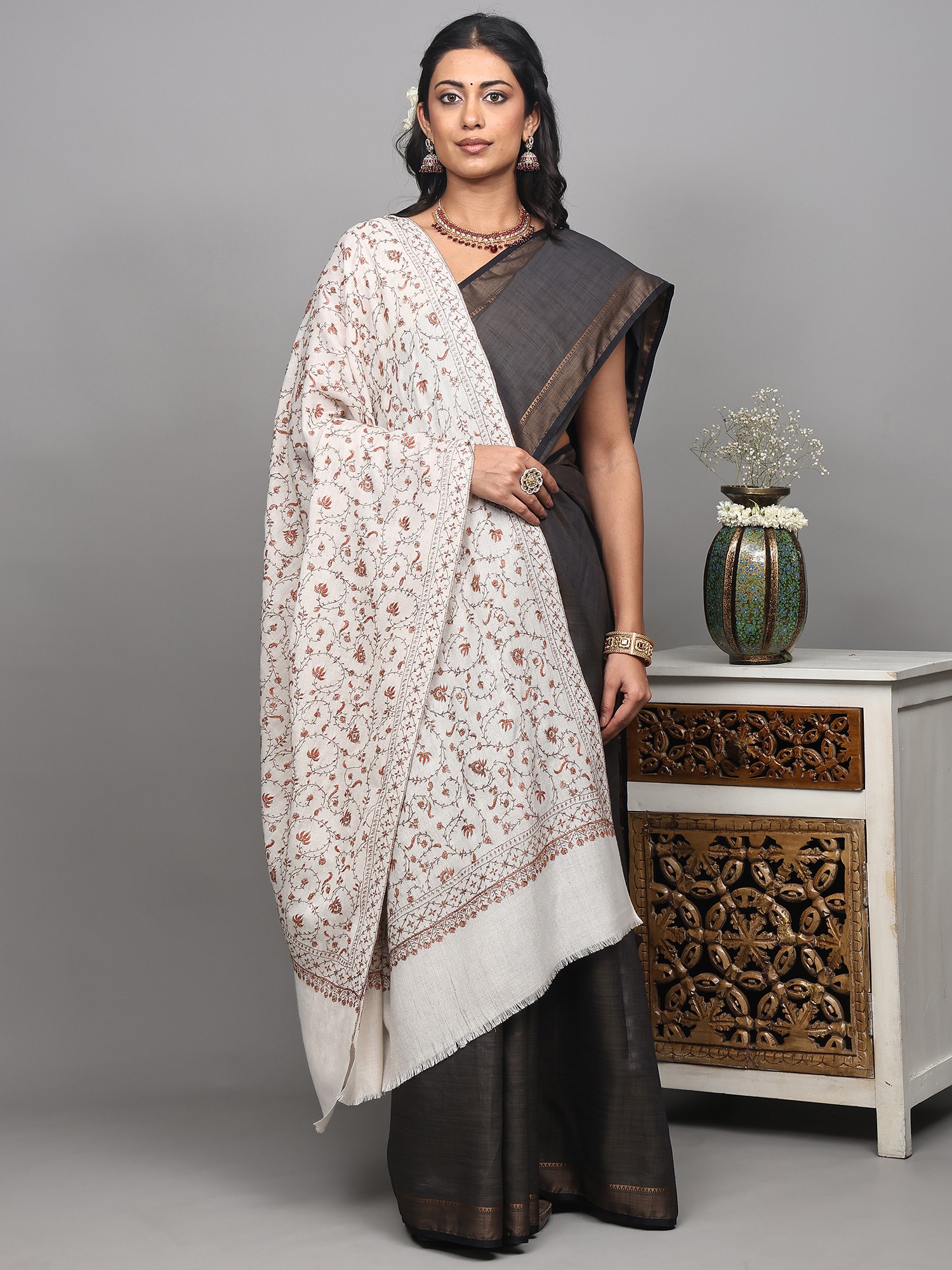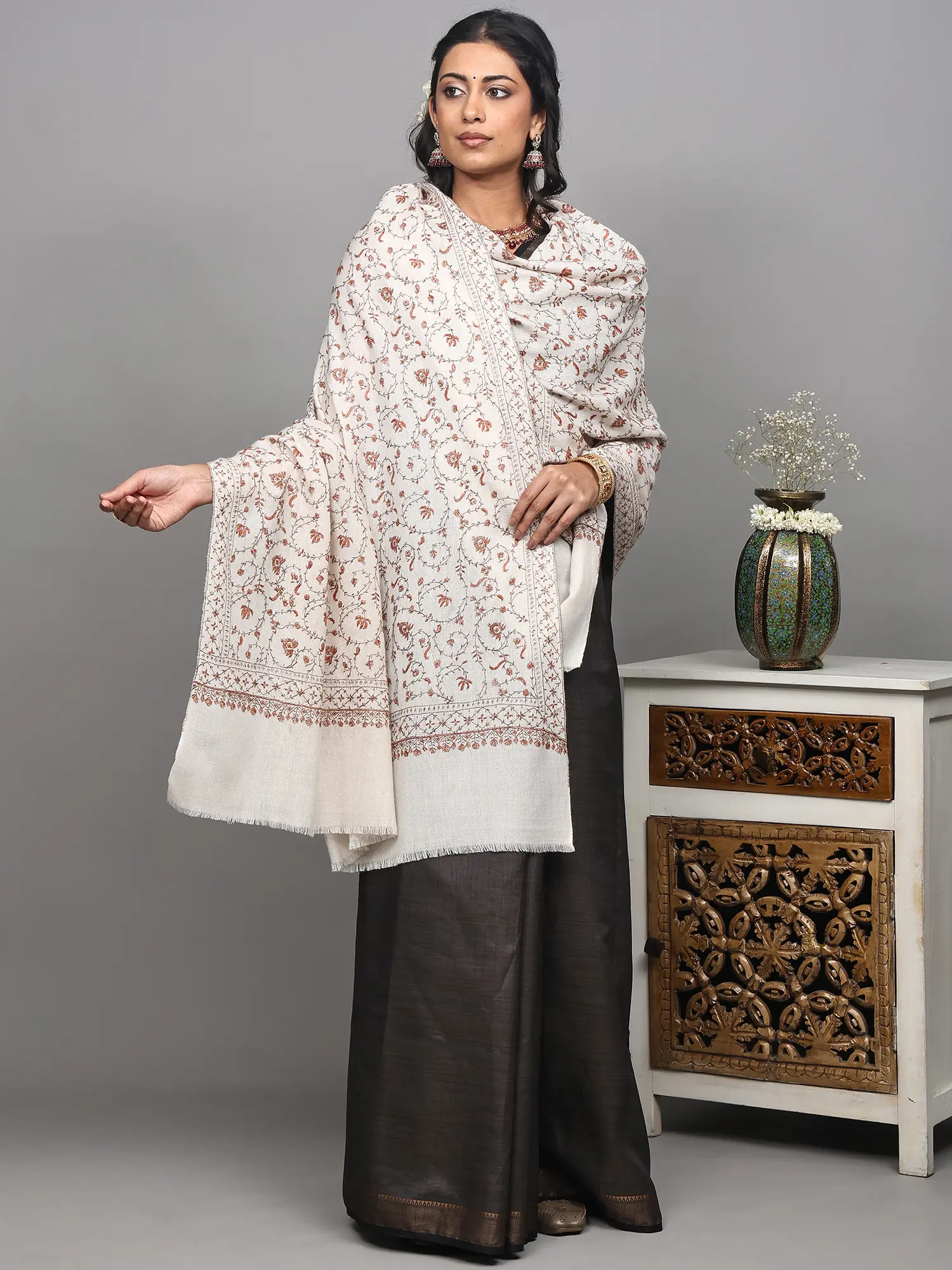 Off White Fine Wool Shawl with Floral Fine Embroidery on Borders