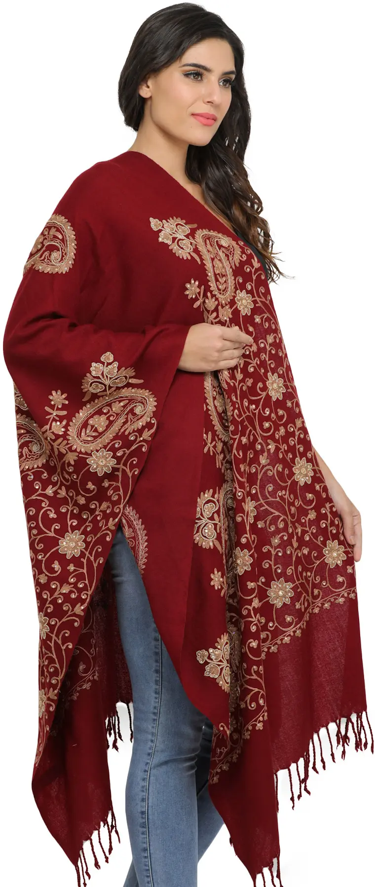 Kashmiri Stole with Crewel Embroidered Booties by Hand