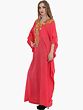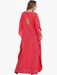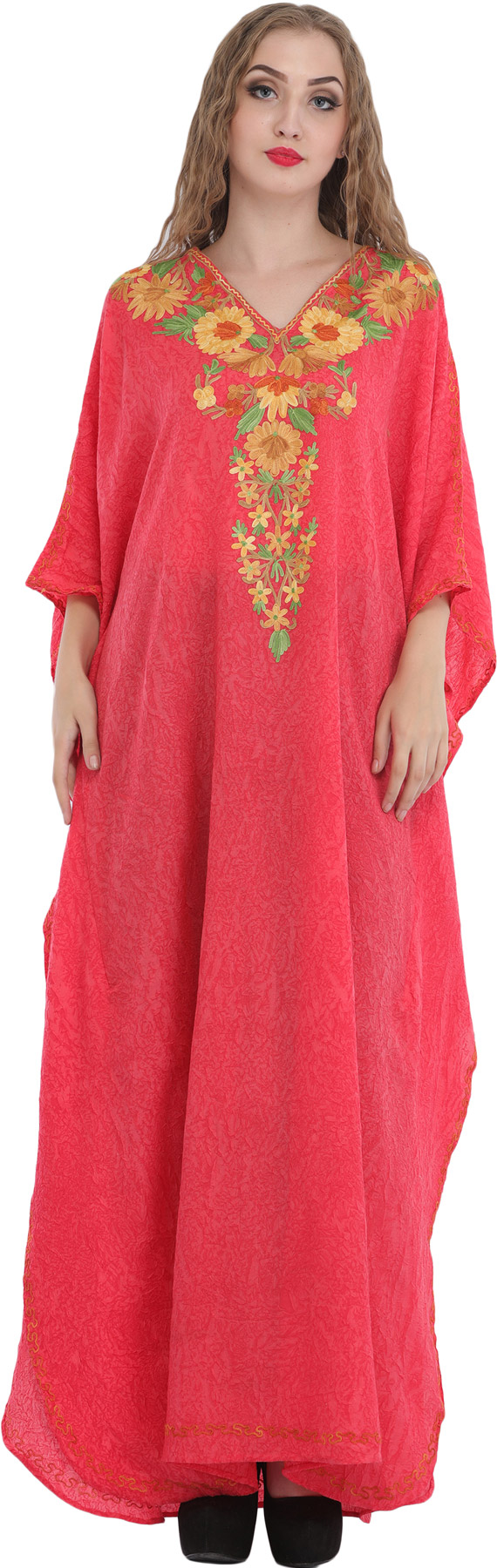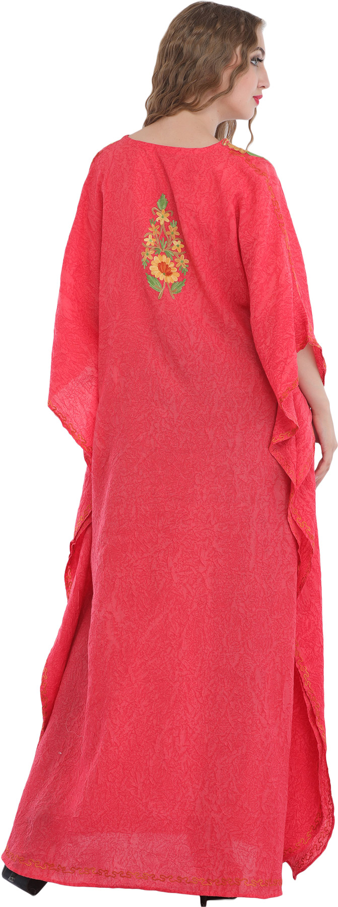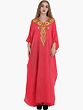 Flamingo-Pink Kashmiri Long Kaftan with Chain Stitch Aari Embroidery