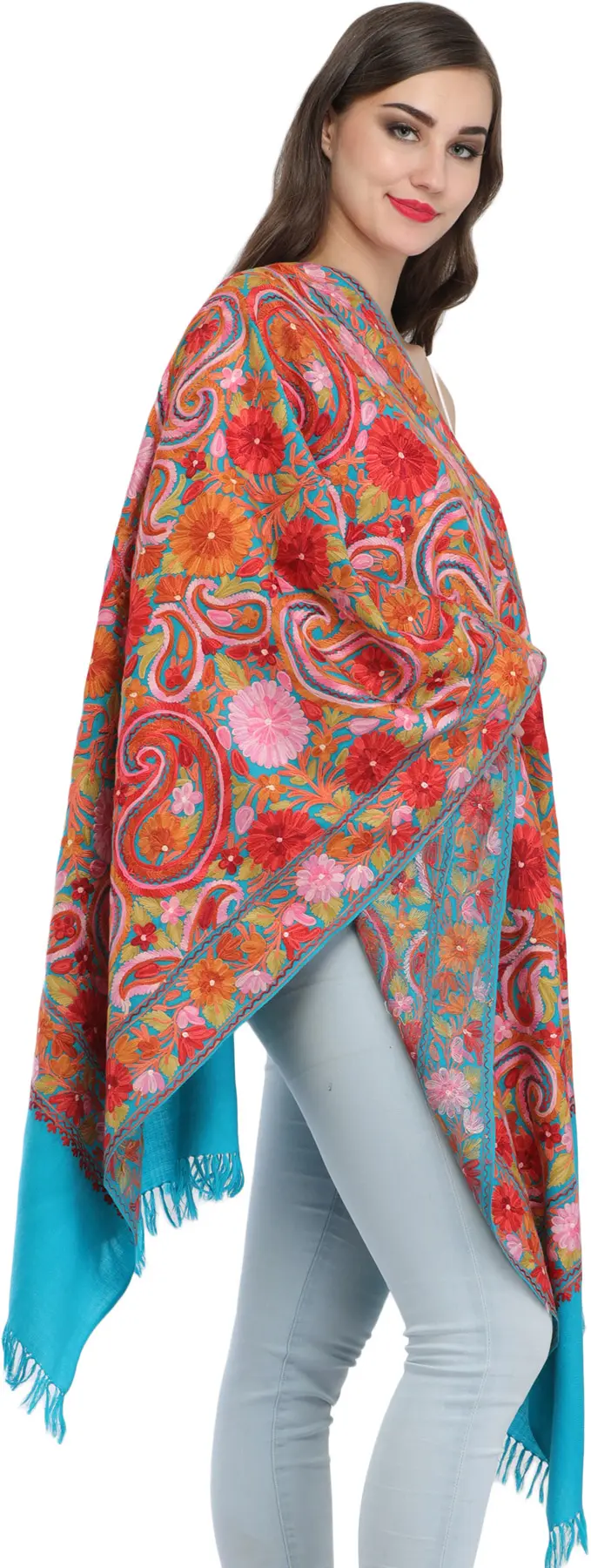 Ari Kashmiri Chakra Stole with Floral Hand-Embroidery and Butterflies
