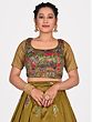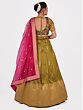 Bottle-Green Net Beads and Golden Thread Embroidery Lehenga Choli with Cutwork Dupatta