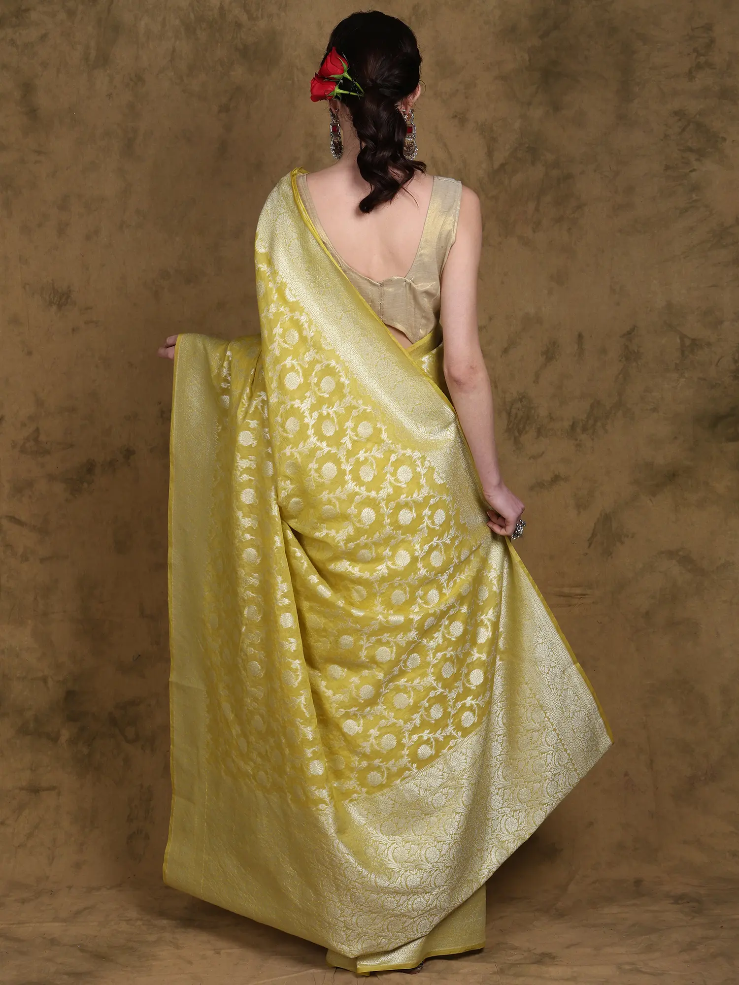 Rock-Ridge Pure Silk Brocaded Meenakari Banarasi Saree with All-Over Zari Woven Floral Jaal