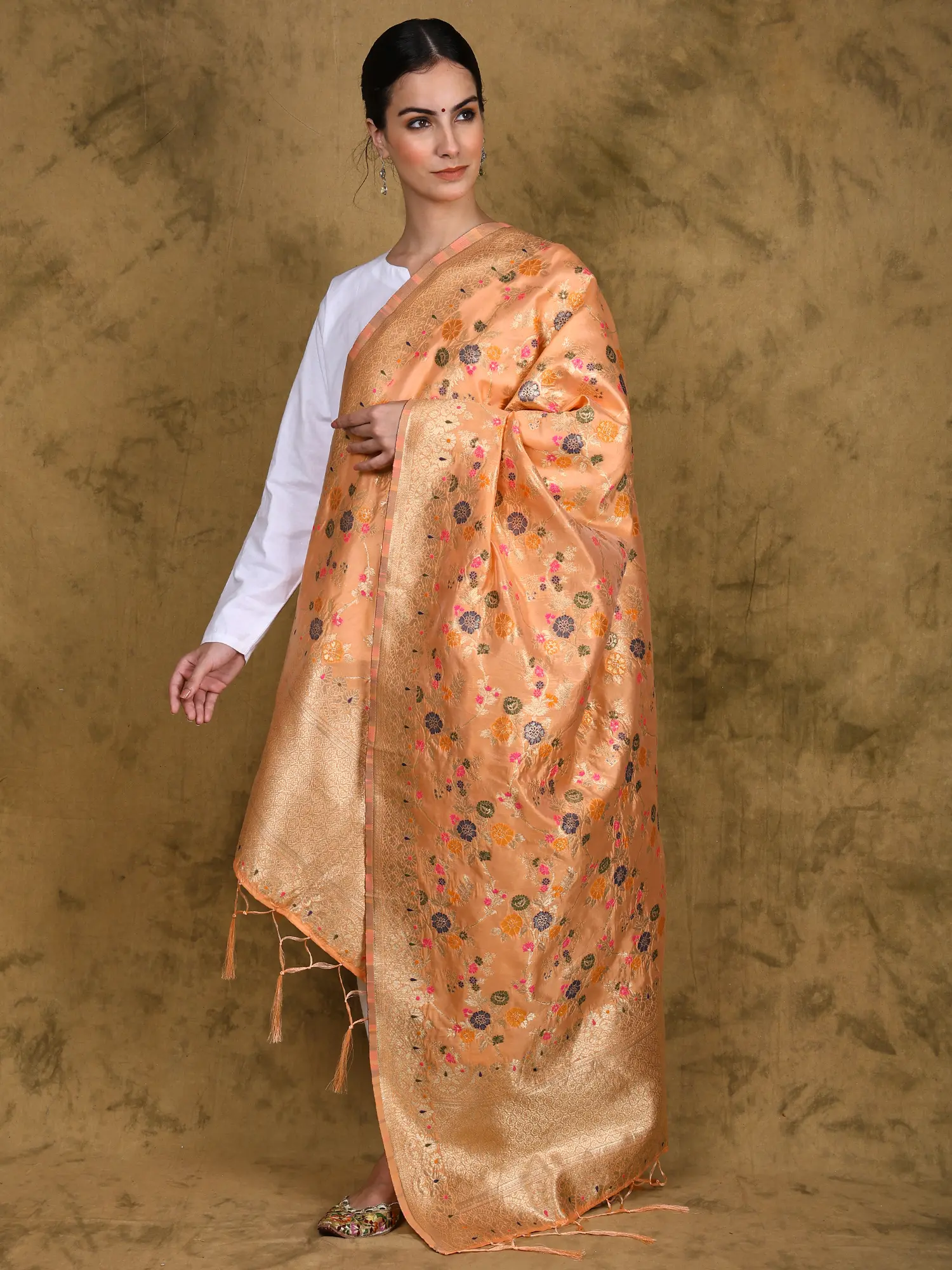 Art Silk Banarasi Dupatta with Zari Woven Floral Motifs