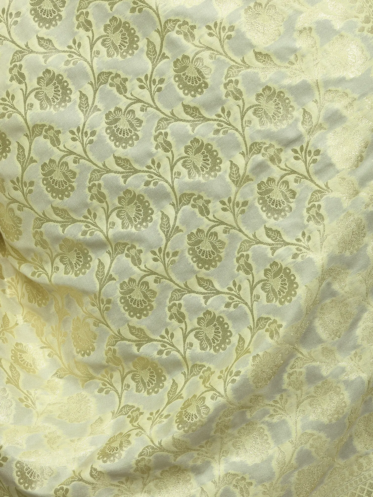 This exquisitely crafted dupatta boasts a luxurious art silk construction, known for its smooth texture and gentle sheen. The fabric flows effortlessly, offering a comfortable and elegant drape. The vibrant mint green color complements a wide range of outfits, from traditional ethnic wear to more contemporary styles. The meticulous attention to detail is evident in the intricate all-over floral vines, delicately woven in shimmering silver, adding a touch of subtle sparkle to the design. The dupatta is completed with delicate fringes, adding a final flourish of elegance.
