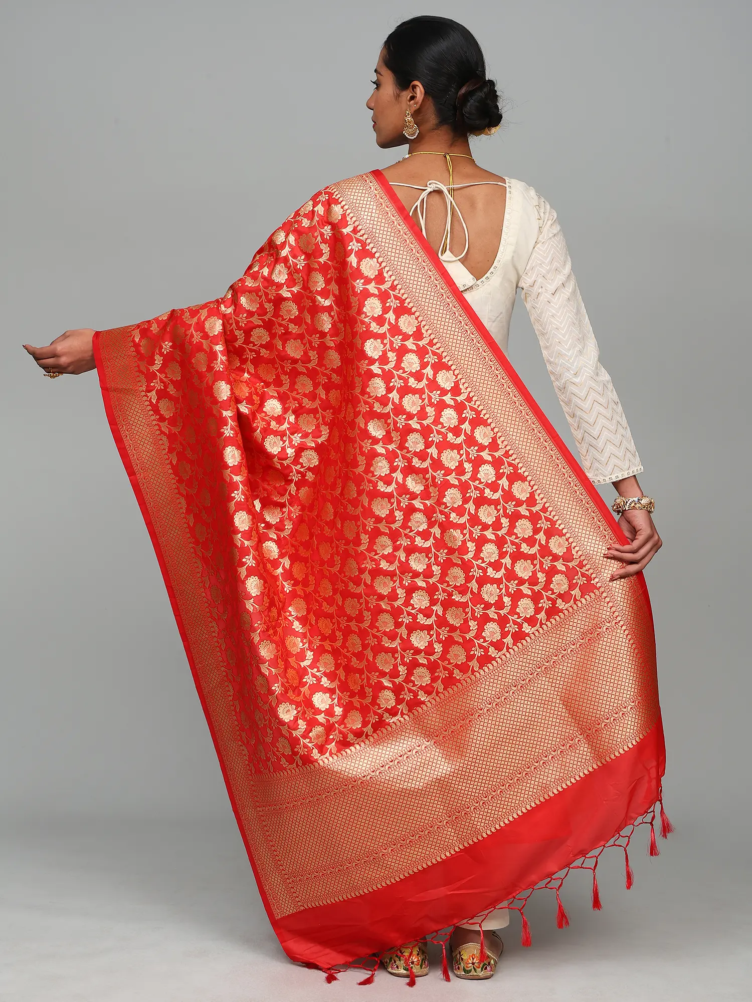 Banarasi Art Silk Dupatta with Zari Woven Golden Floral Bootis and Contrast Border