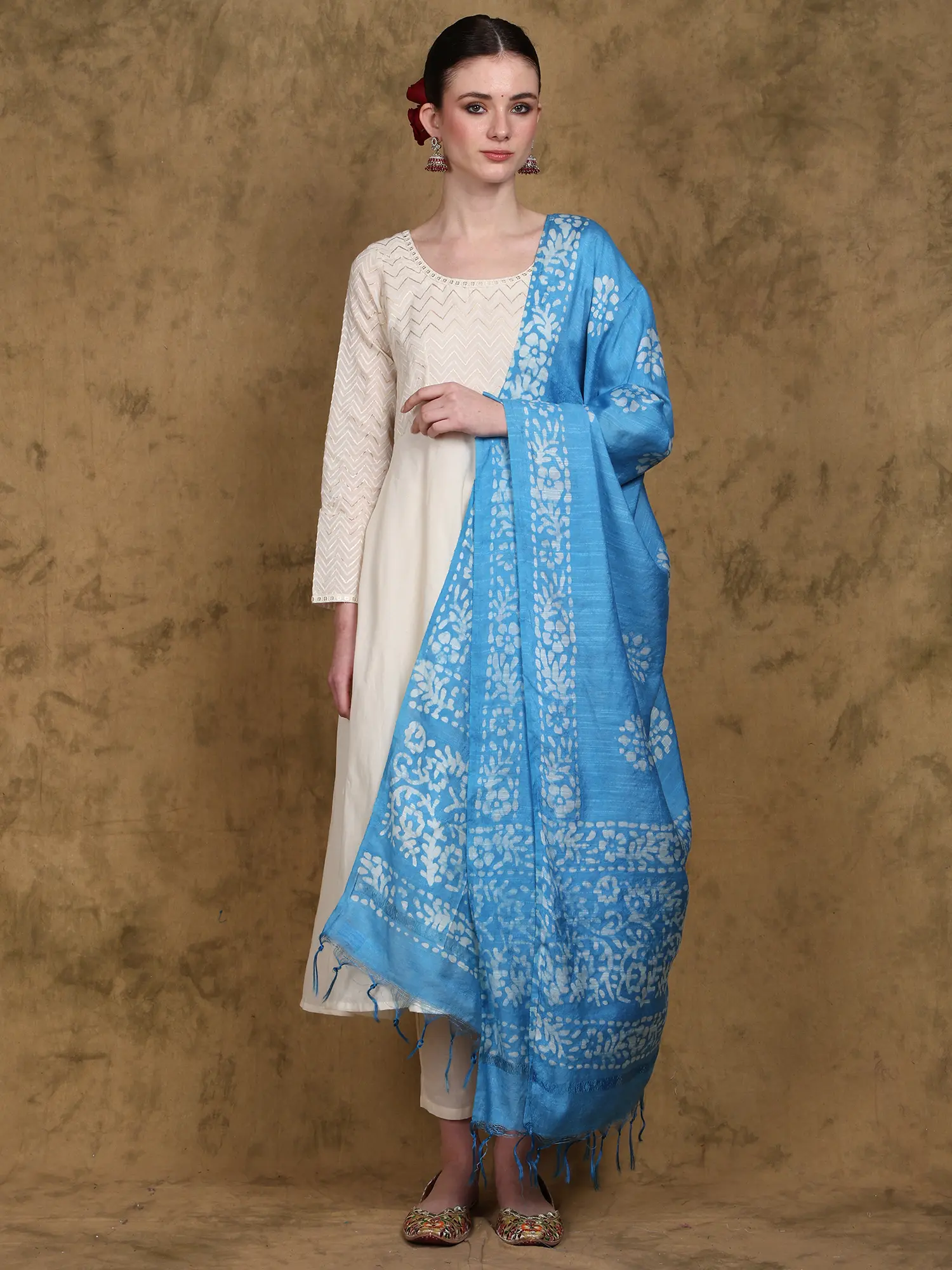 Embrace the Elegance of Telangana: A Batik-Printed Art Silk Dupatta
