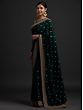 Jet-Black Brocaded Wedding Sari from Bangalore With Zari-Woven Florals and Paisleys
