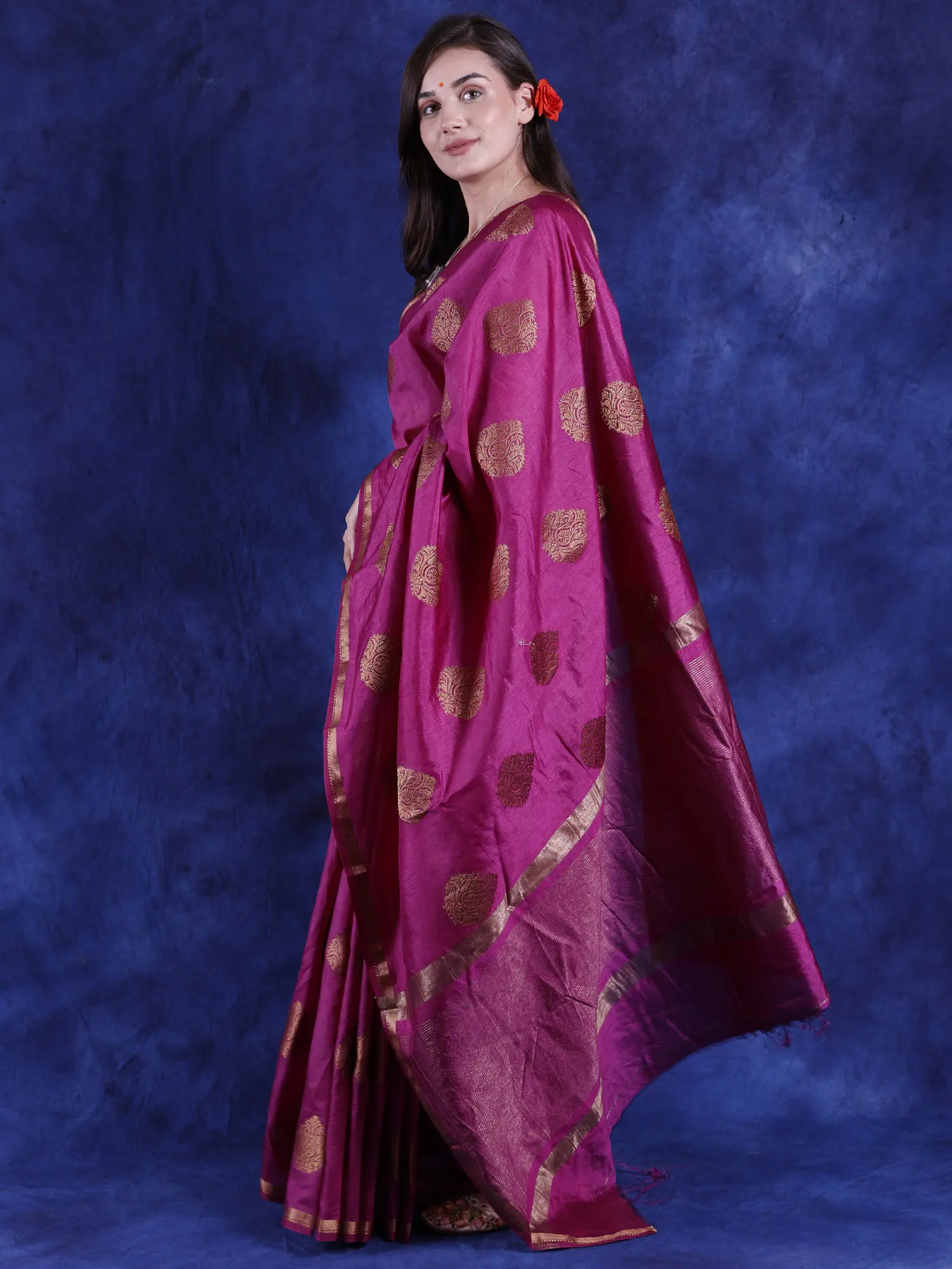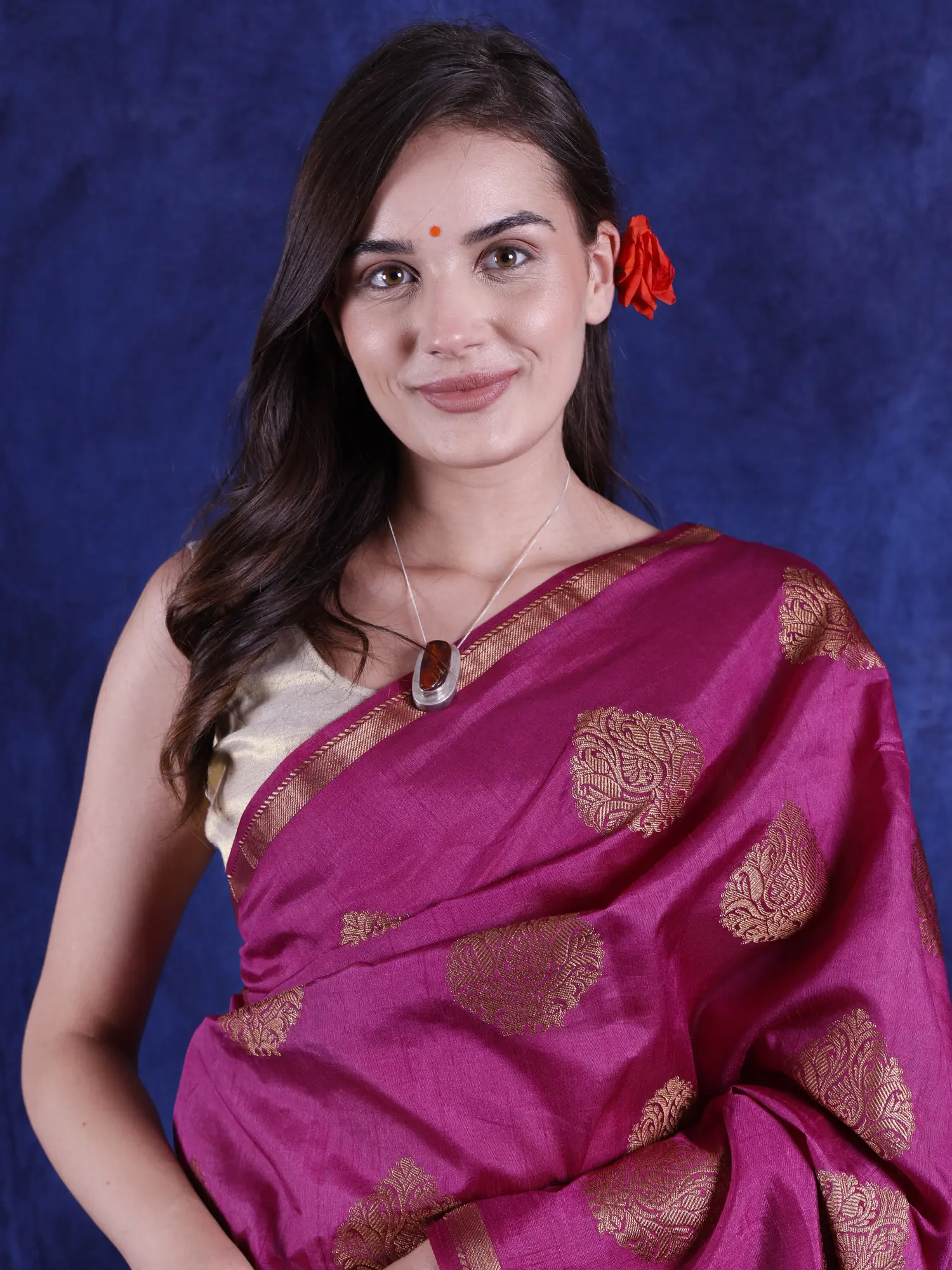 The interplay of Zari and art silk creates a classy drape, perfect for festivals, parties, and days of celebrations.