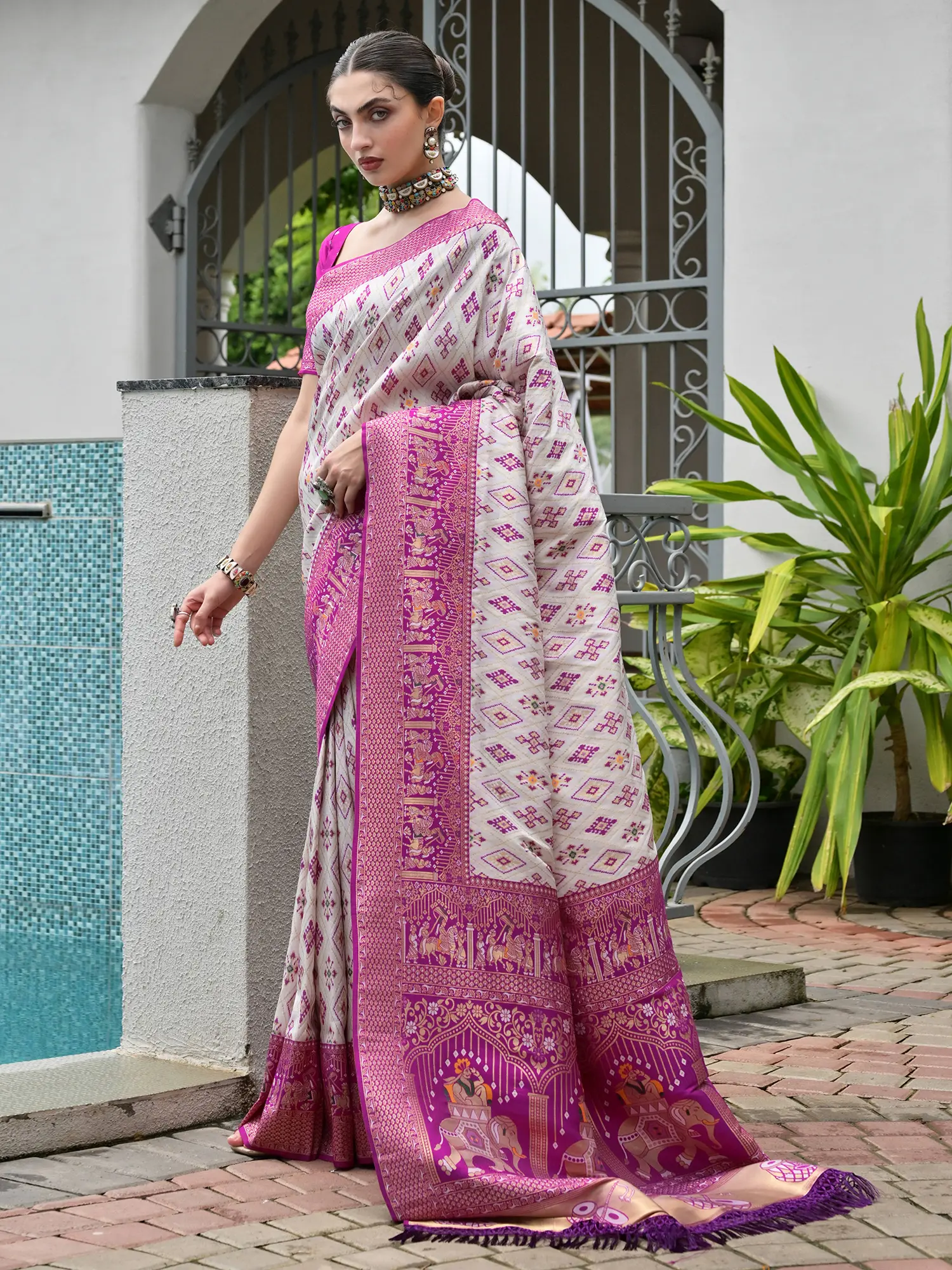 Artisan Woven Banarasi Patola Silk Saree With Meenakari Details