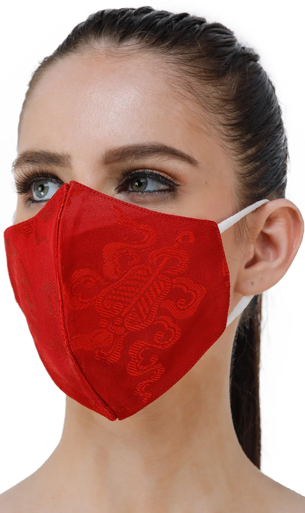 This mask, crafted from satin, embraces comfort and mirrors the cultural richness of Banaras. Its two-ply design ensures both protection and breathability, making it a seamless companion for your daily endeavors. The Ashtamangala motifs, adorning this mask, signifies sacred symbols of prosperity, radiating positive energy with every wear. Cherish tradition without sacrificing contemporary flair as you make a fashion statement with every step.