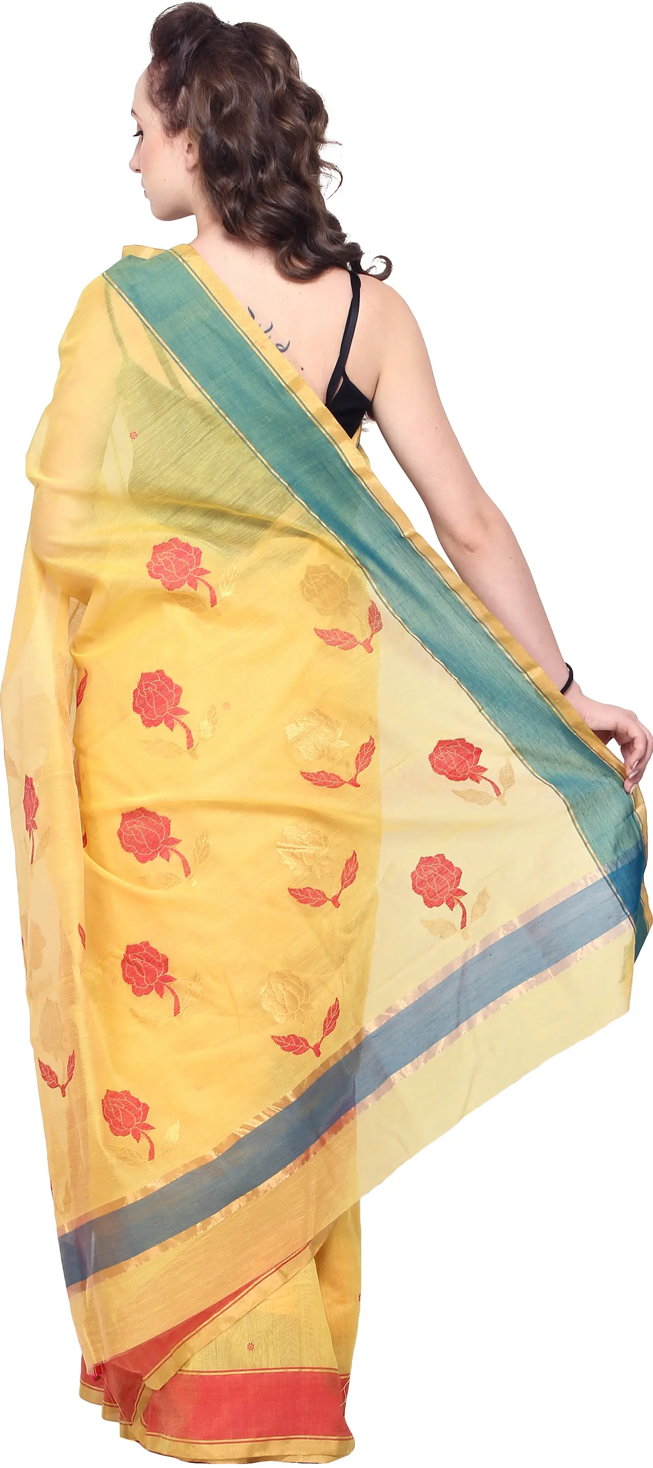 Aspen-Gold Chanderi Sari with Woven Bootis and Roses on Pallu