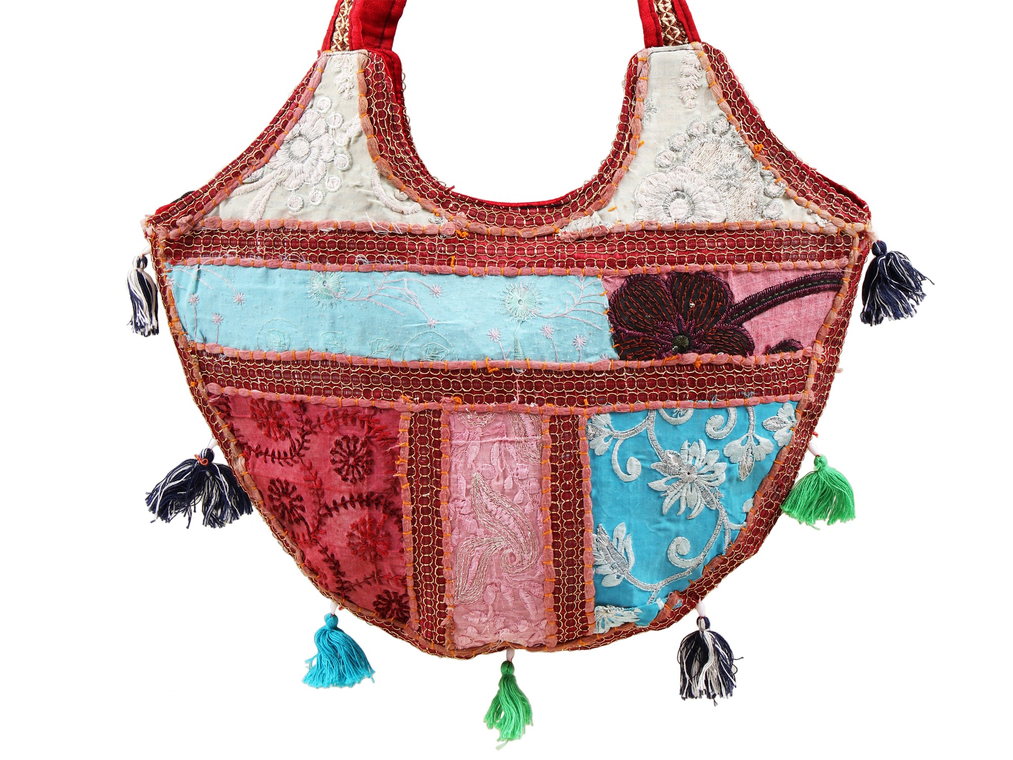 Make a statement with the Assorted Patchwork Embellished Handcrafted Floral Medium Upcycled Shoulder Bag from Jaipur, featuring charming tassels. This unique bag is a blend of artistry and sustainability, showcasing the beauty of upcycled materials in assorted floral patchwork. The intricate embellishments add a touch of bohemian flair, making it a standout accessory for any occasion. Embrace the spirit of eco-friendly fashion with this handcrafted shoulder bag, perfect for those who appreciate distinctive accessories that tell a story of creativity and conscious living.