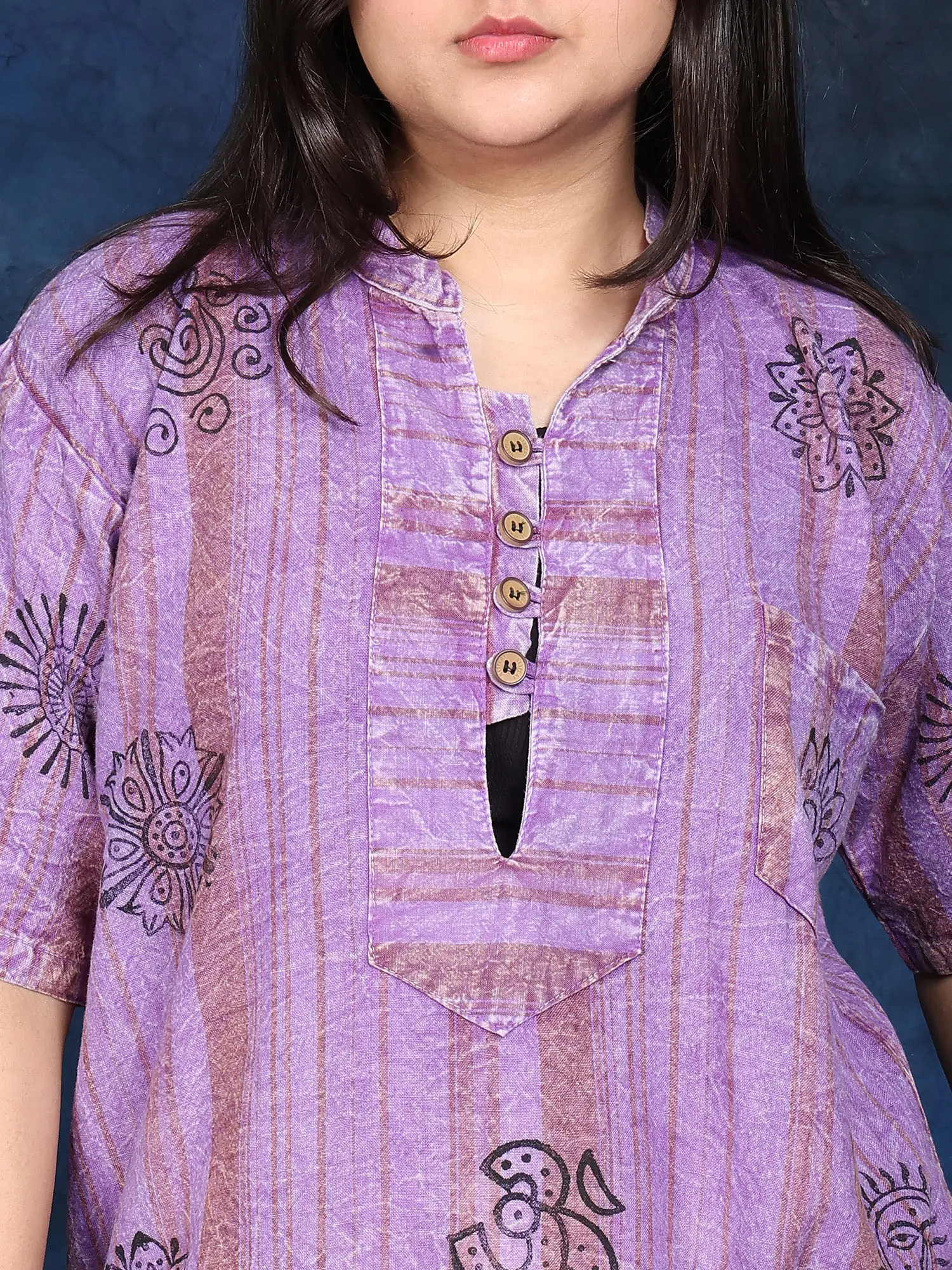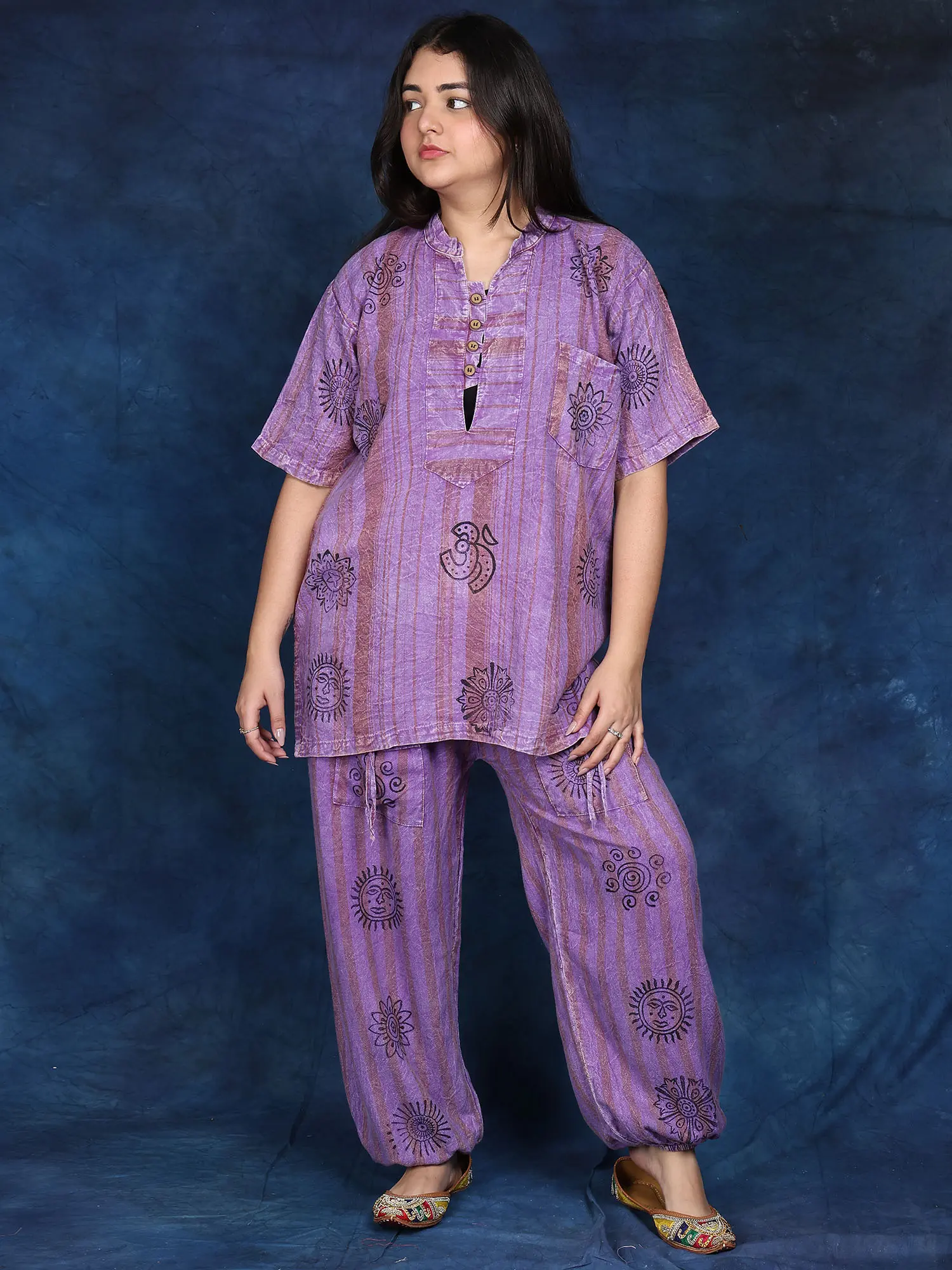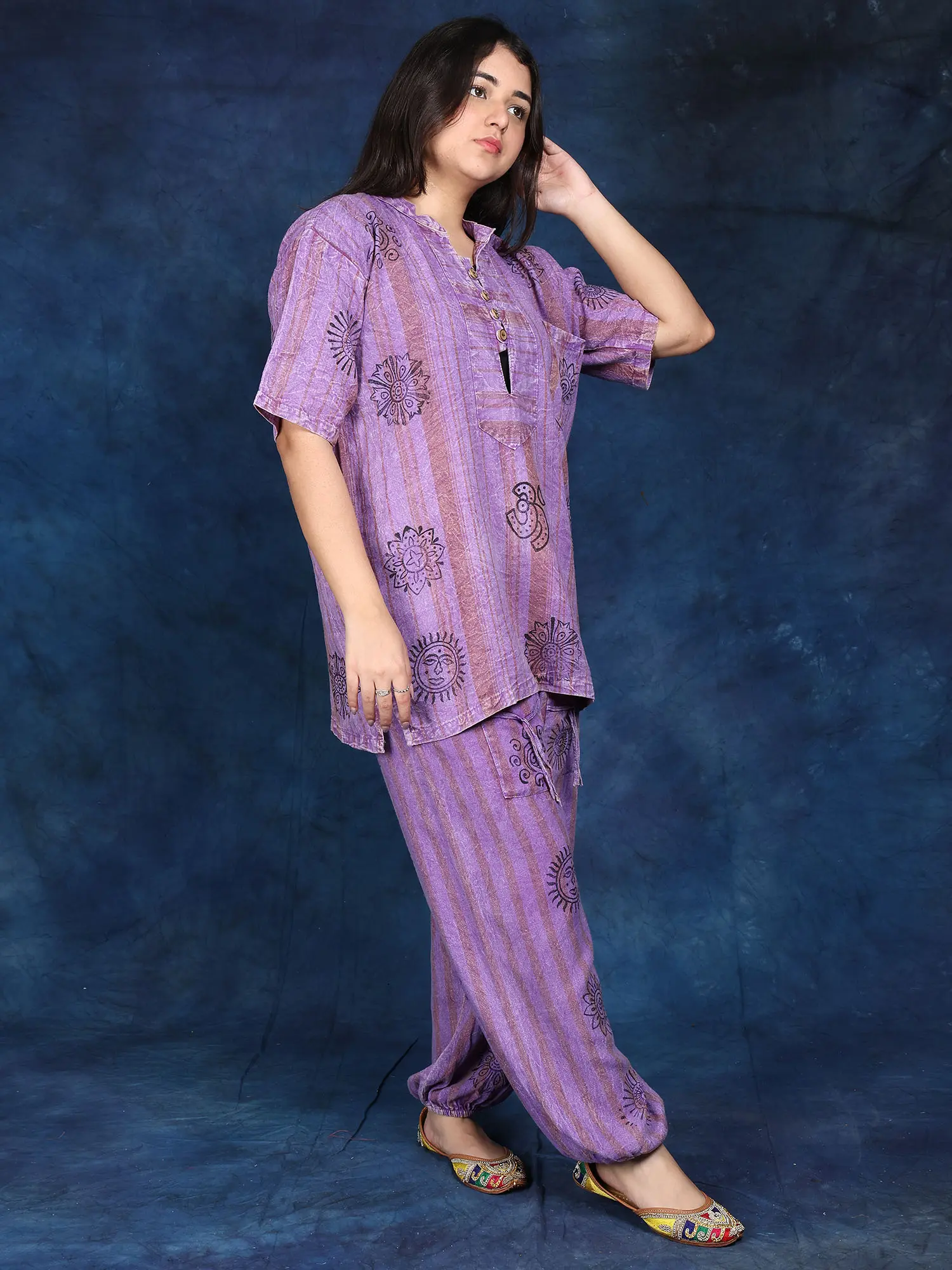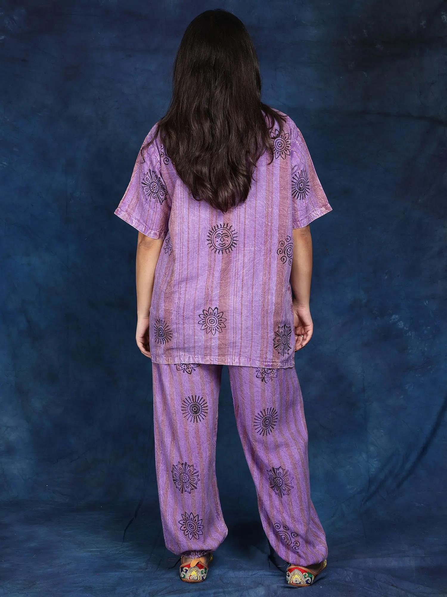 River-Blue Kaftan Style Pure Cotton Co-Ord Set with Printed Flowers