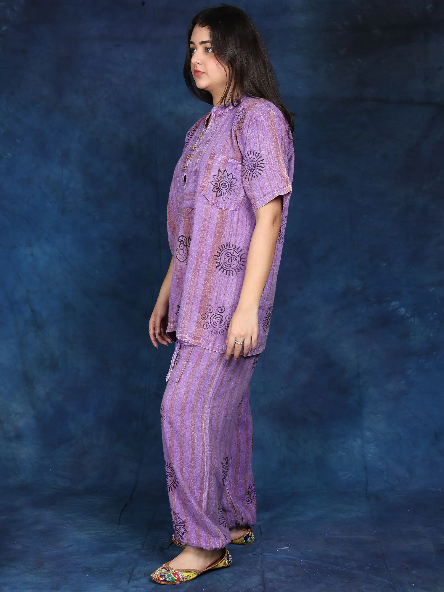 Star-White Pure Cotton Co-Ord Set with Printed Floral Vines