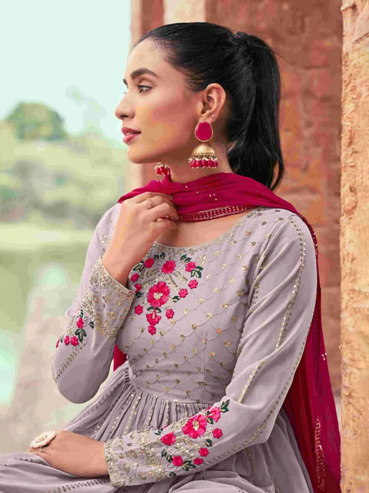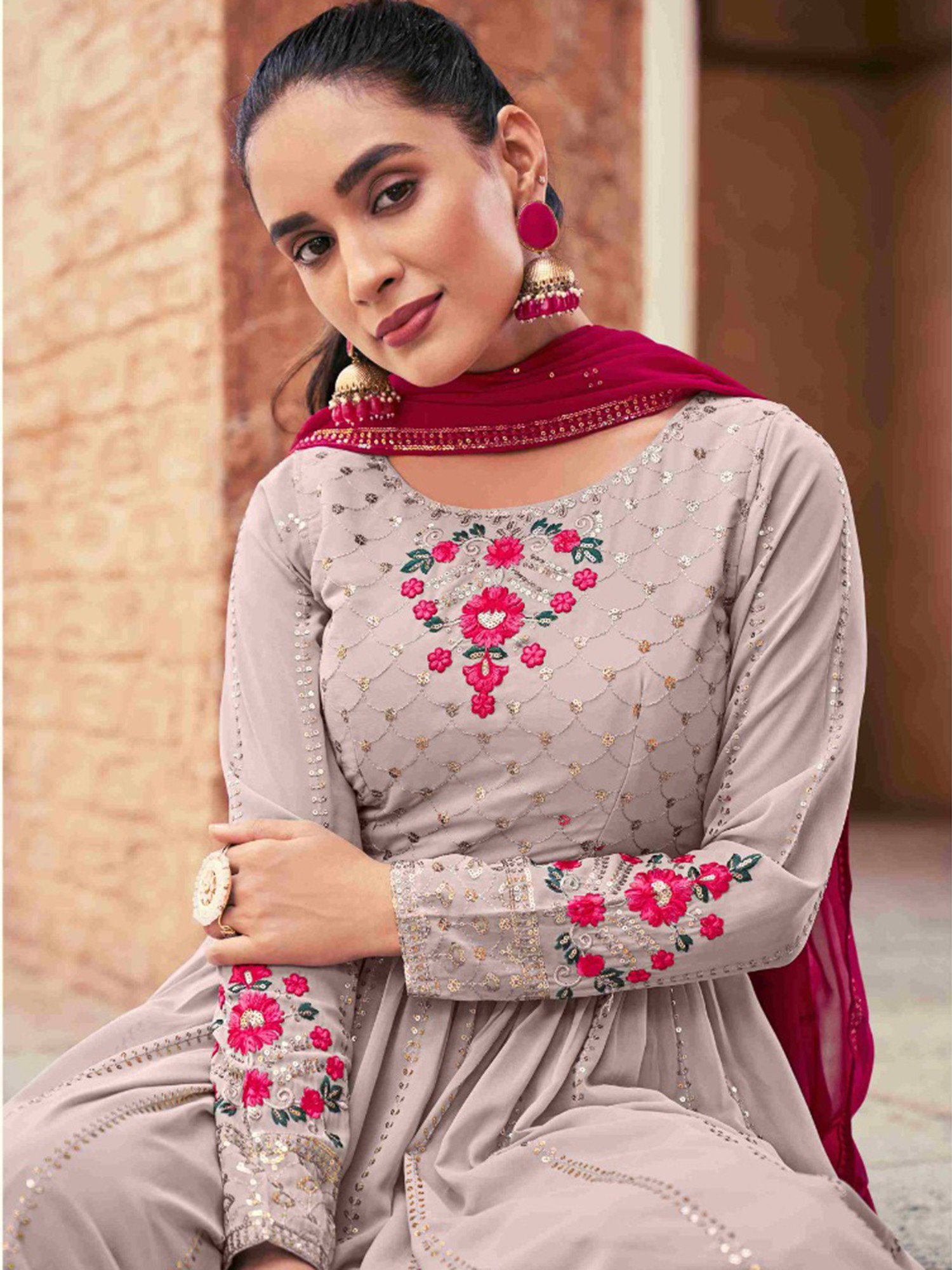 Georgette Anarkali Dress Set with Zari and Sequin Embroidery Work