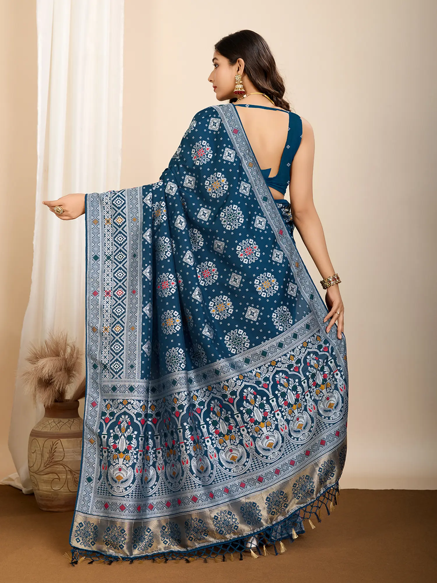 Brocaded Banarasi Silk Floral Butta Saree with Chakra Pattern Wide Border
