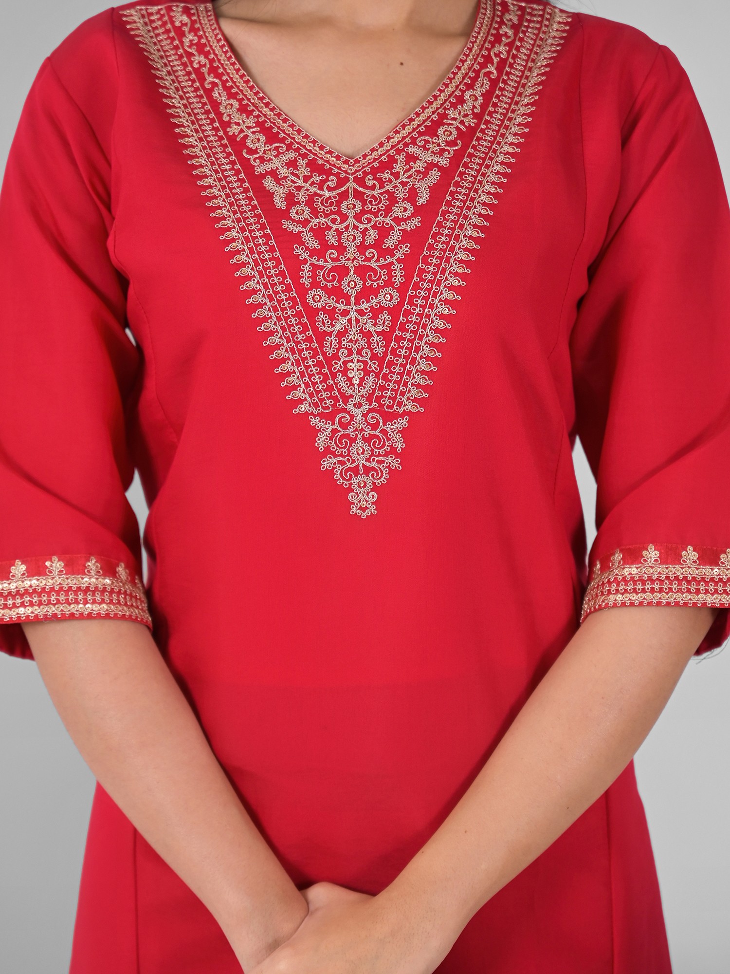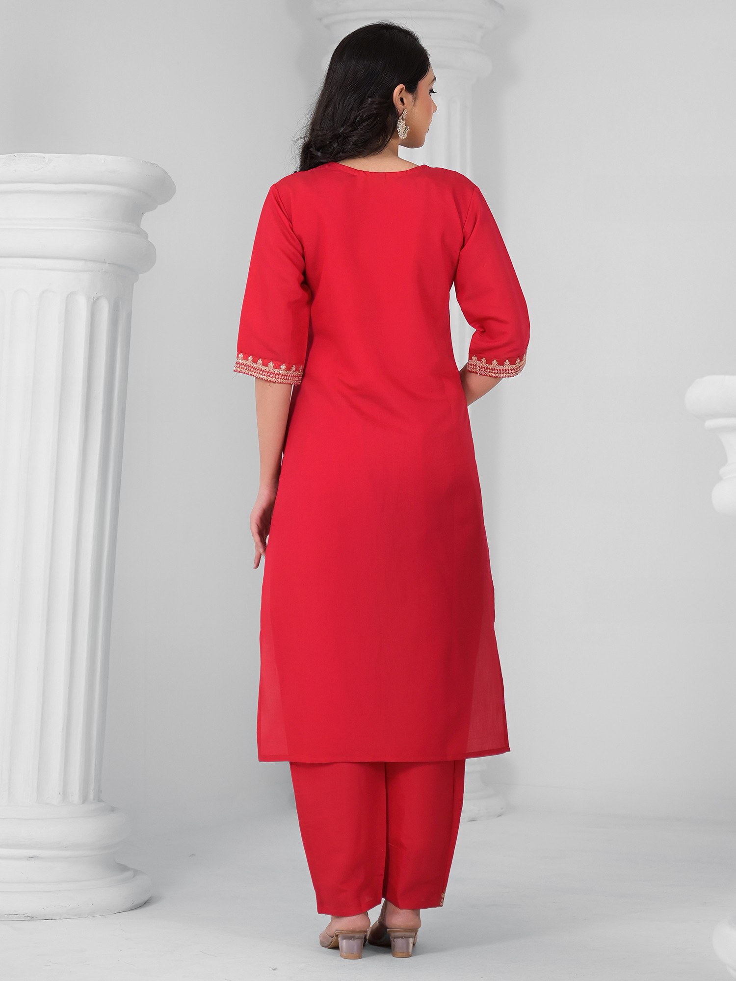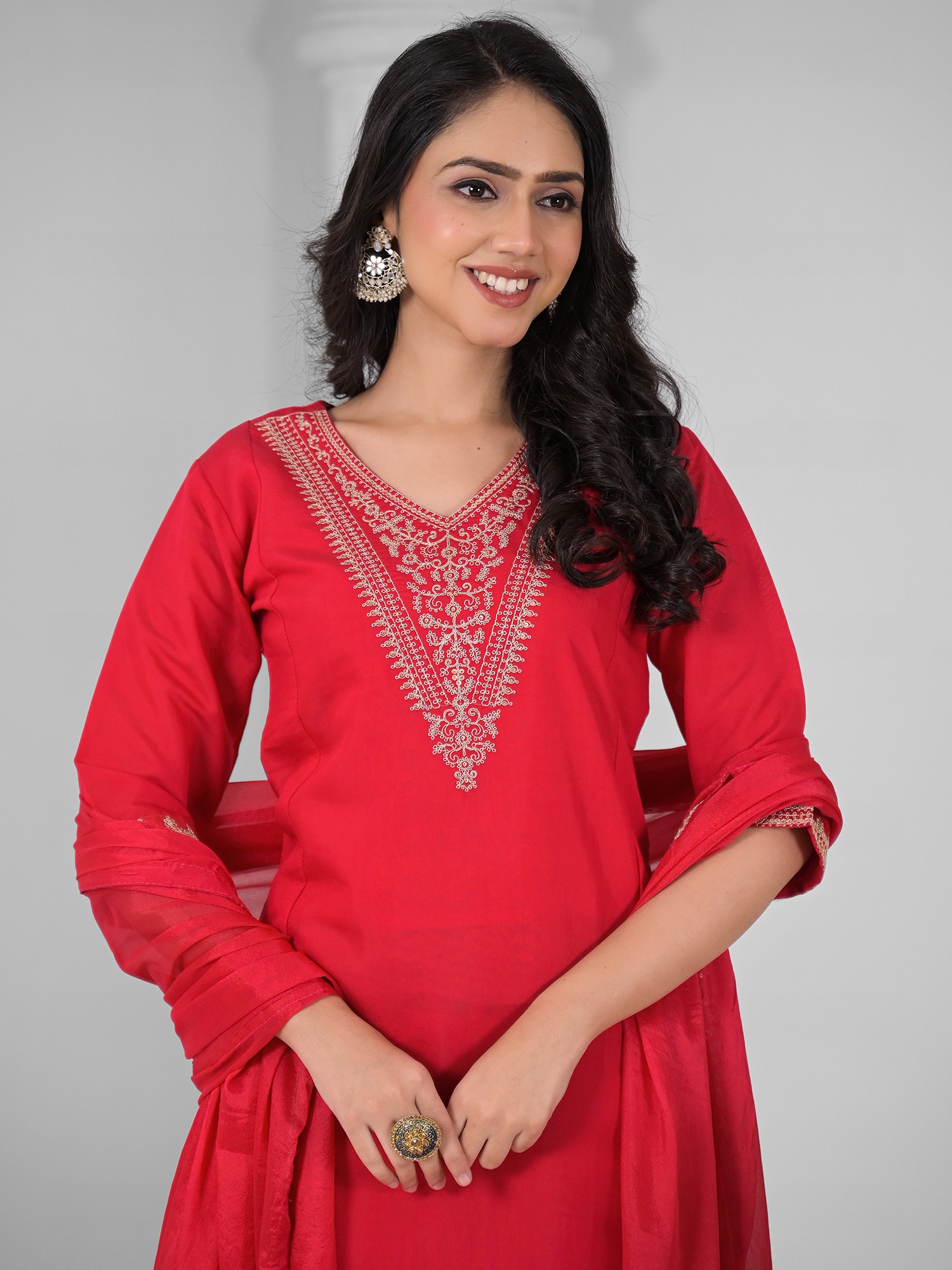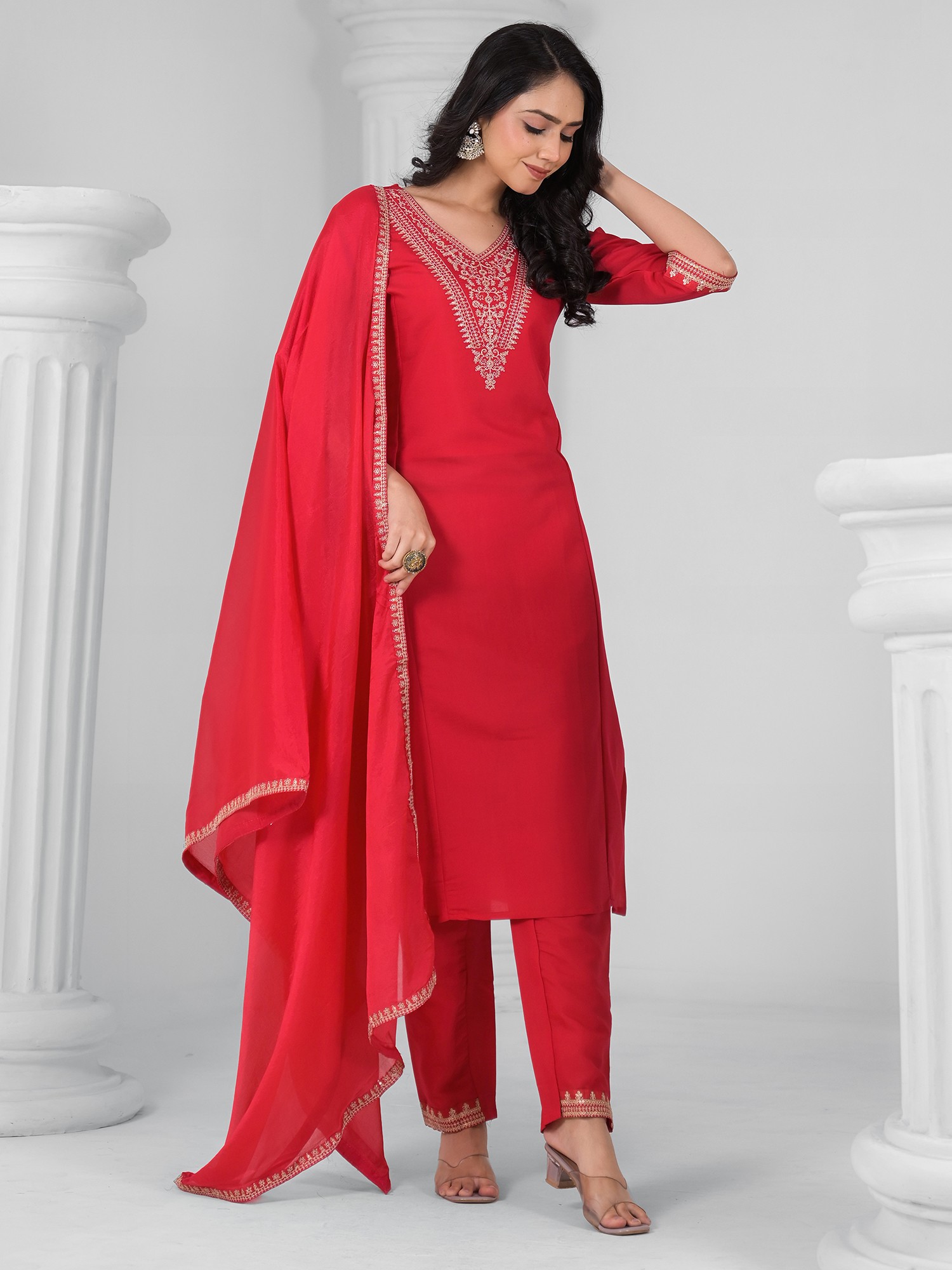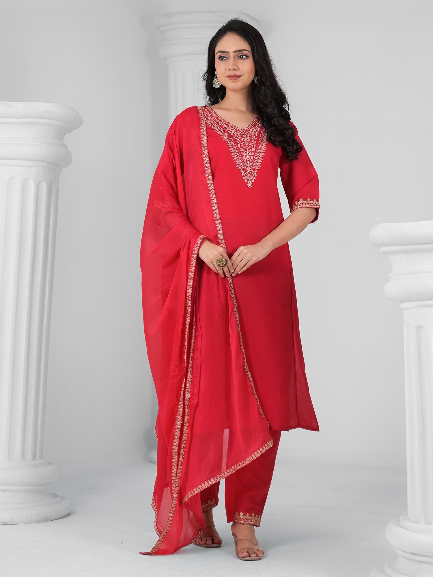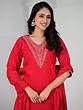 Rayon Slub Embroidery Work Straight Attractive Long Kurta Set With Matching Dupatta