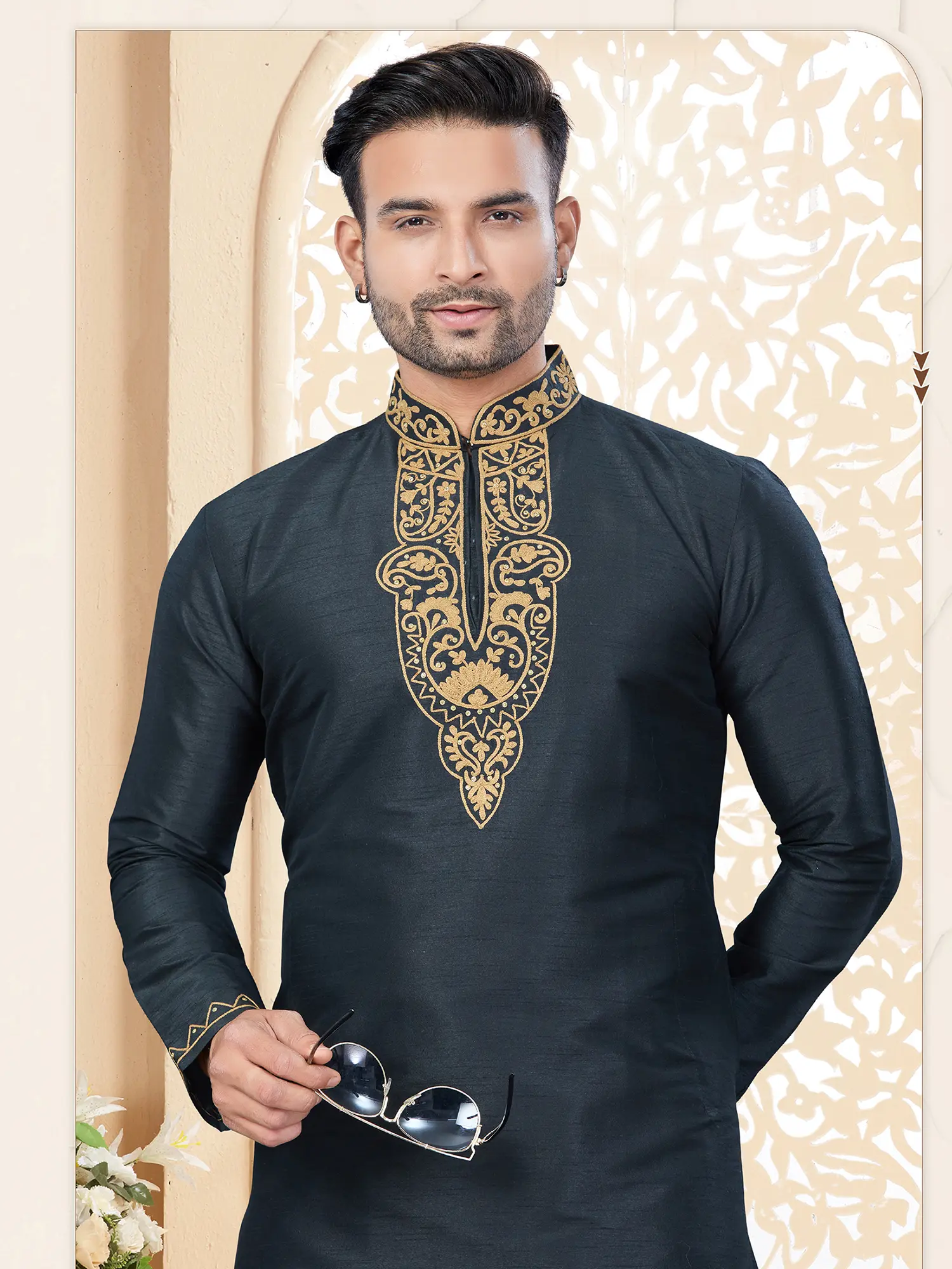 Embroidery Work Full Sleeve Jacquard Art Silk Stunning Straight Kurta Pajama
