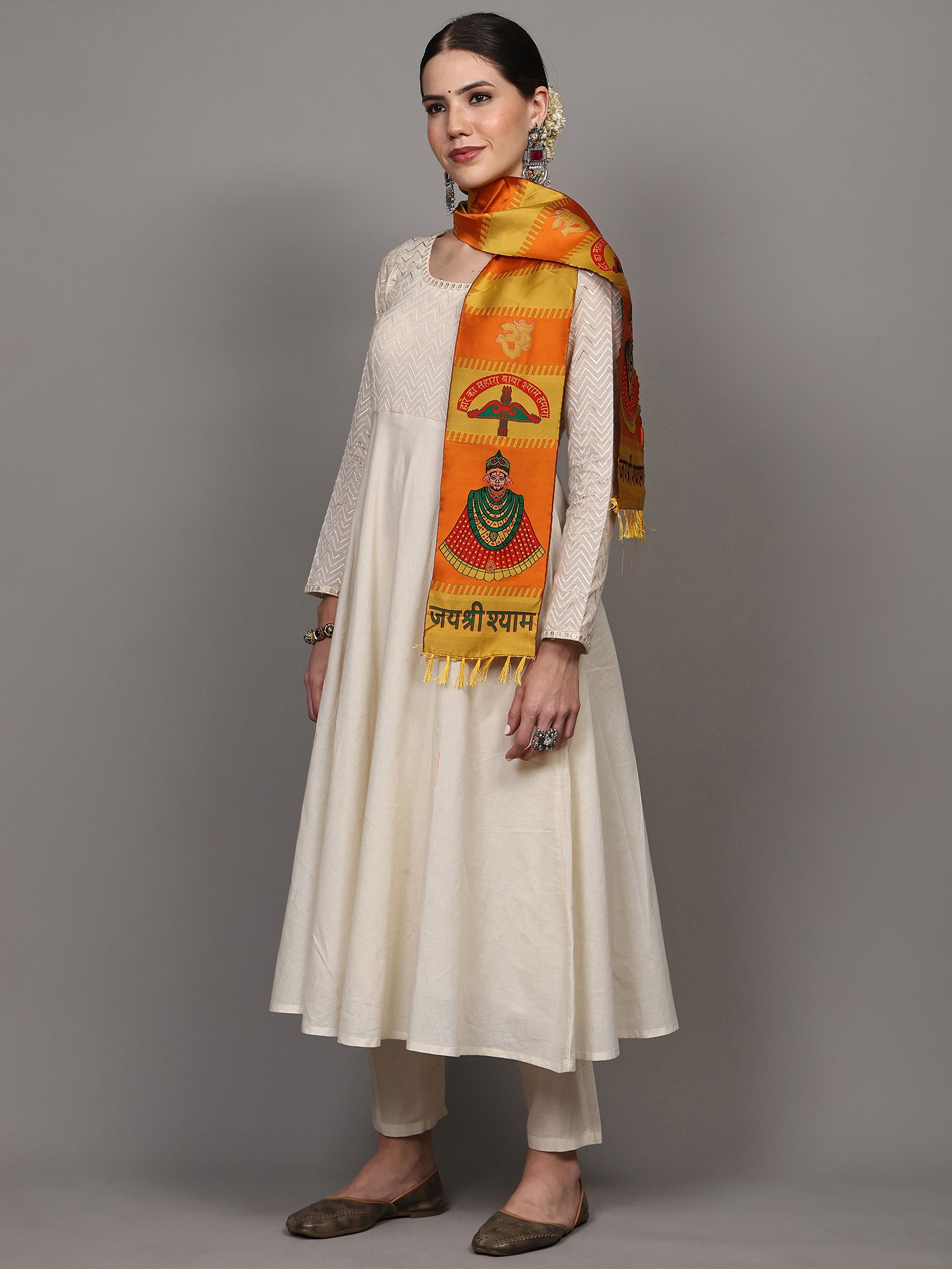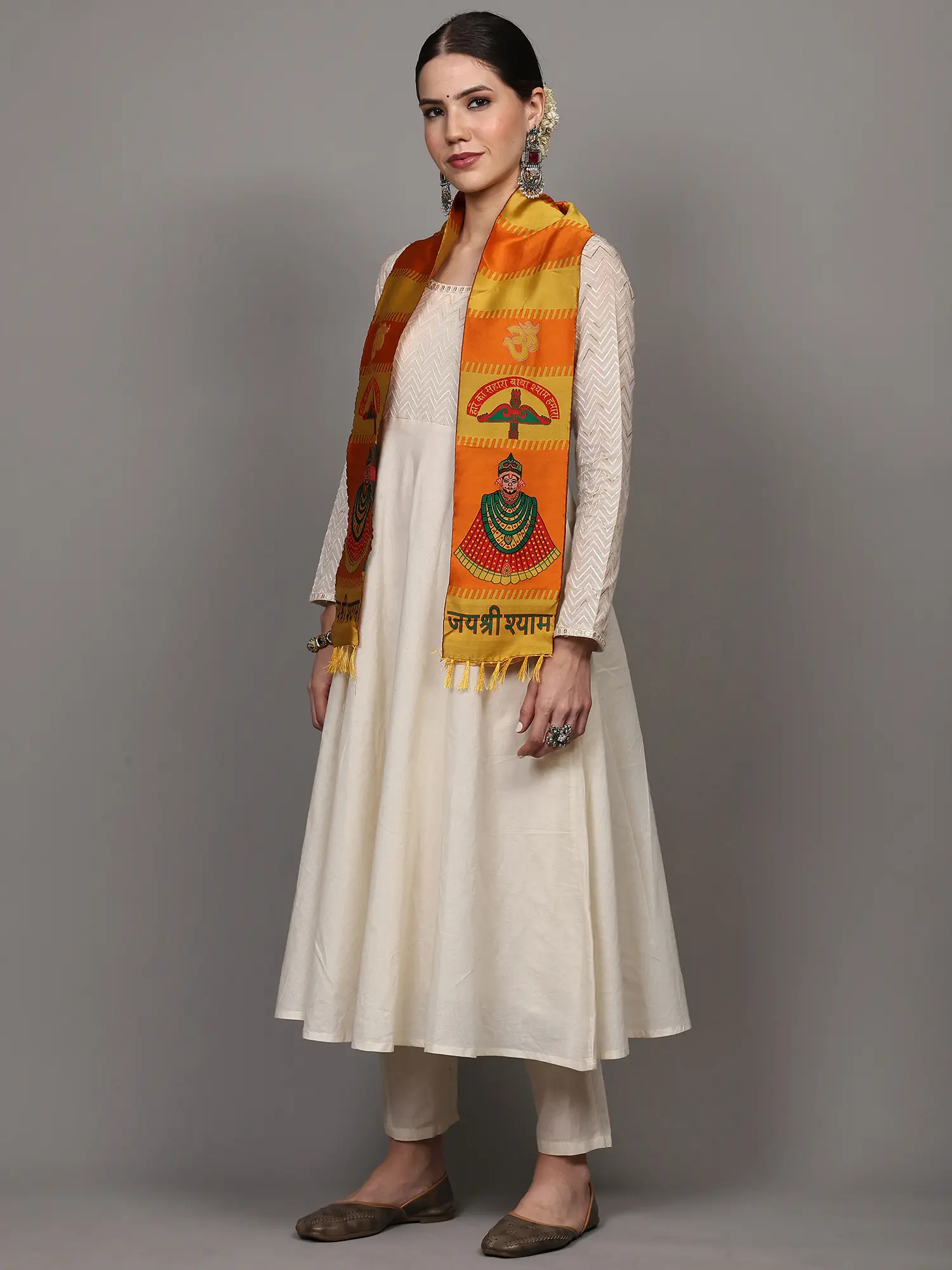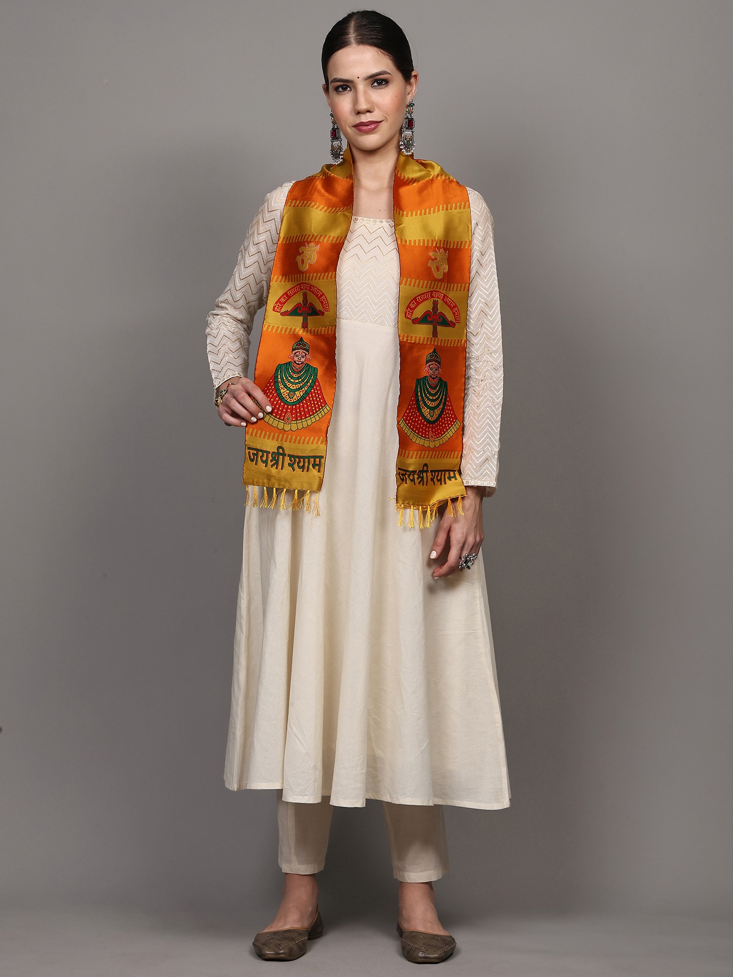 Radiant-Yellow Pure Cotton Jai Shree Ram Printed Prayer Shawl