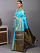 Scuba-Blue Kanjivaram Saree with Woven Peacocks Motifs in Copper Colored Thread and Contrast Border-Anchal from Bangalore