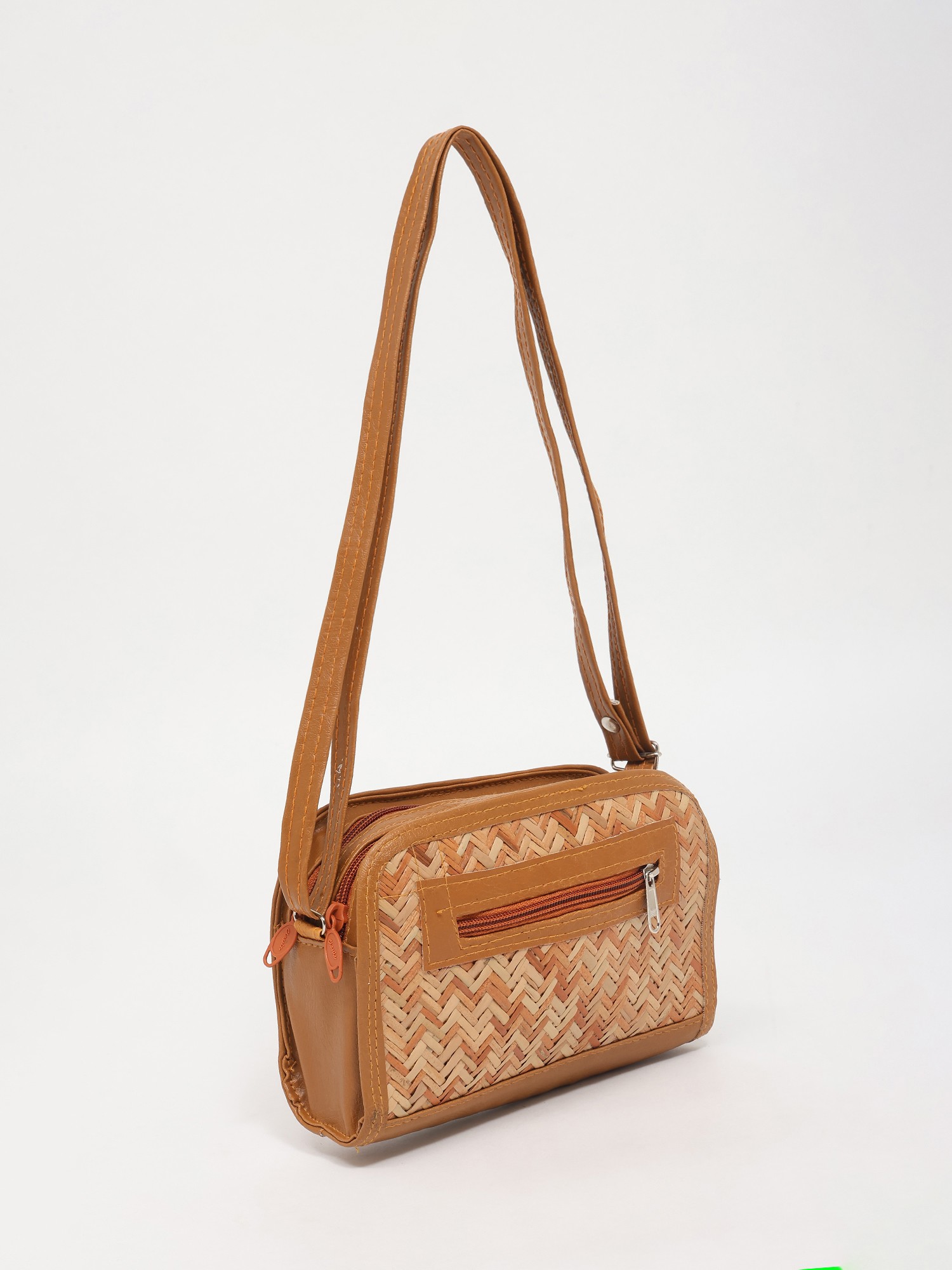 Eco Friendly Handmade Bamboo Shoulder Bag with Zipper Closure