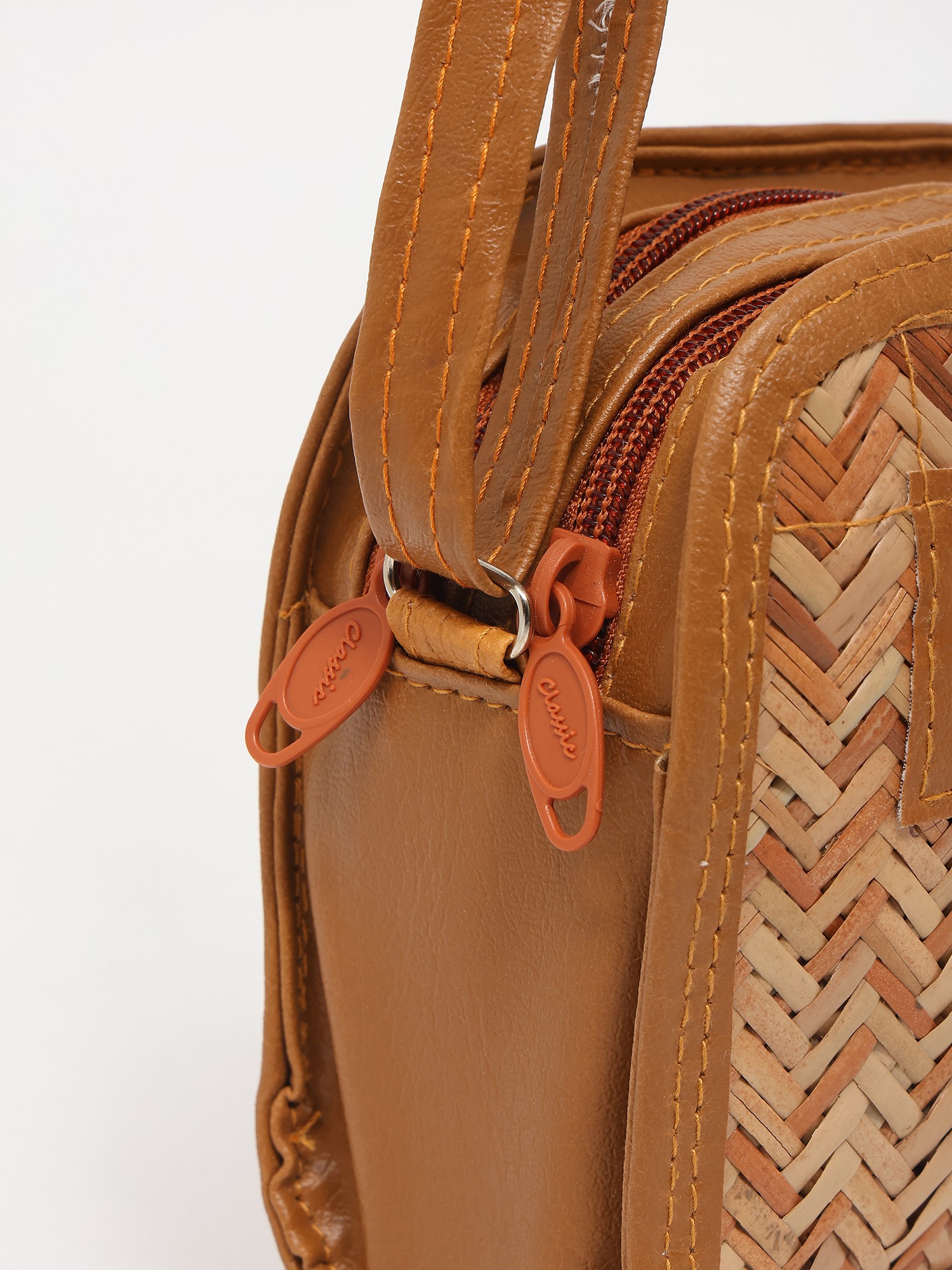 Burnt-Brick Bamboo Stripe Shoulder Bag with Dual Zip