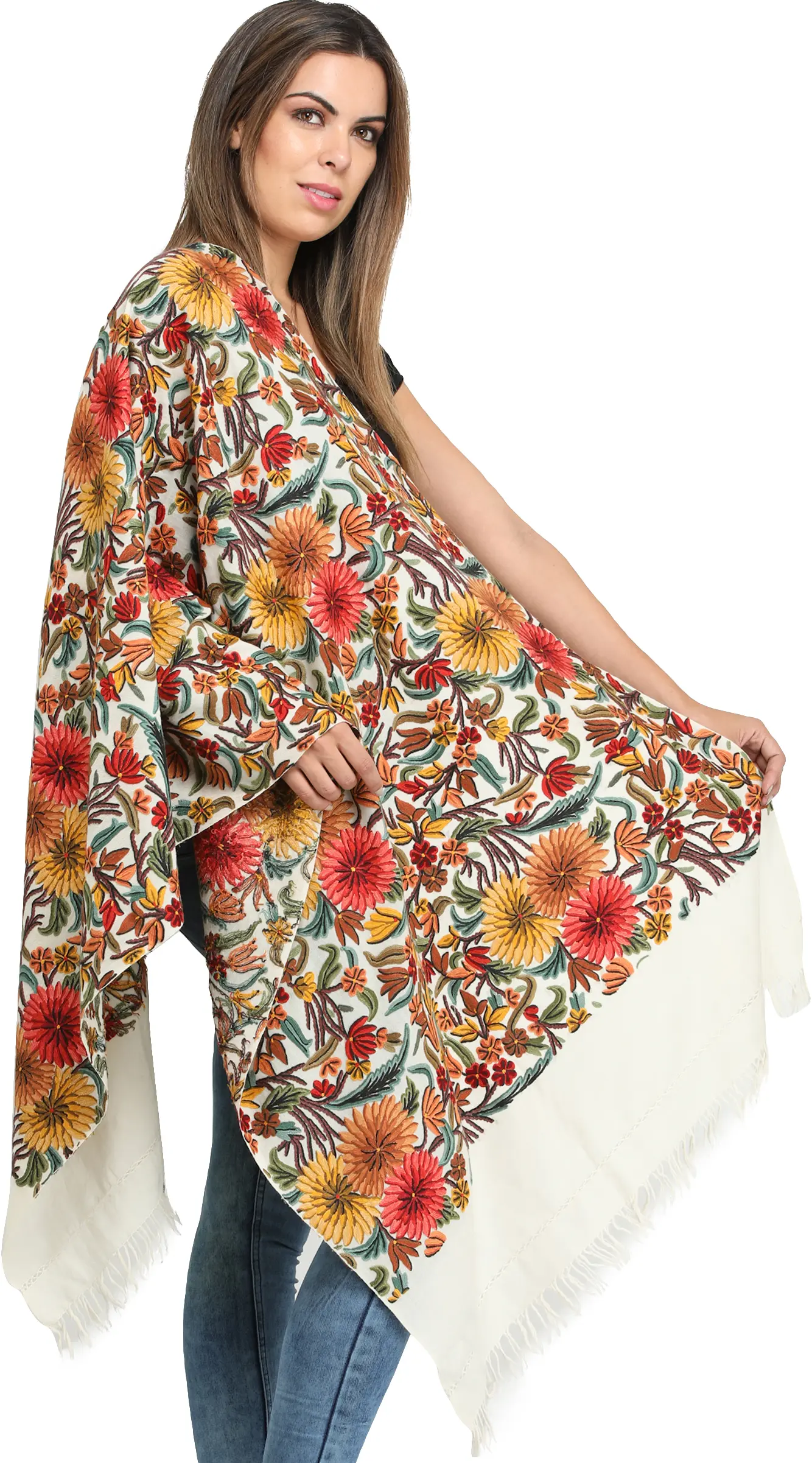 Ari-Embroidered Stole from Amritsar with Embroidered Beads and Sequins