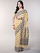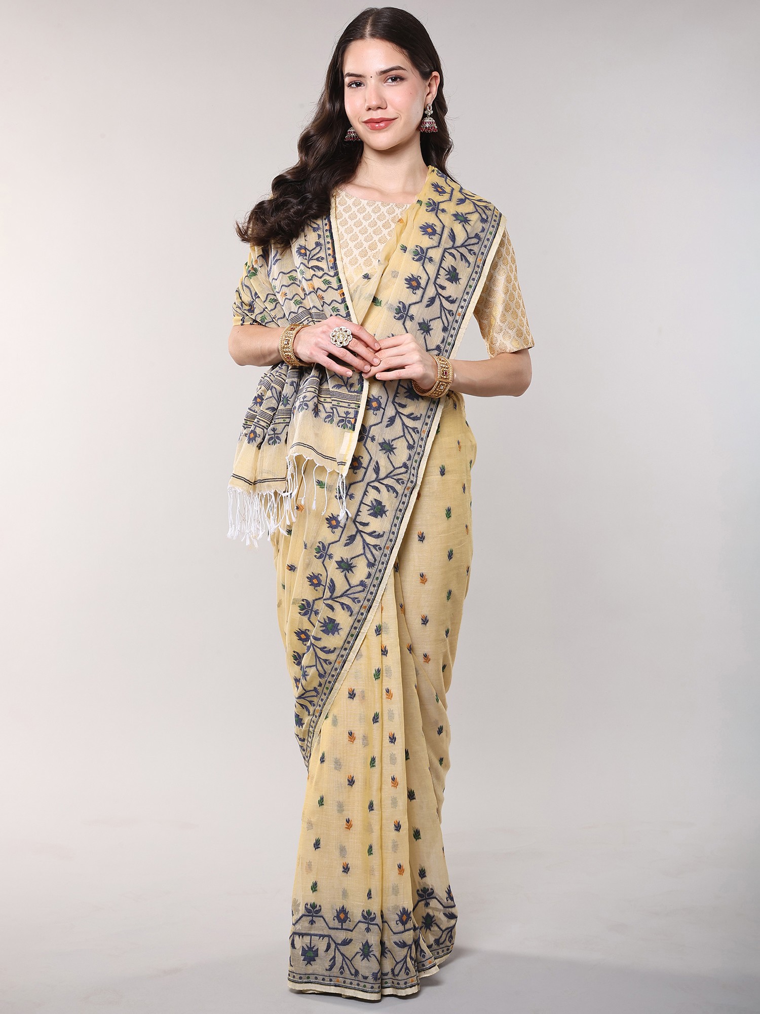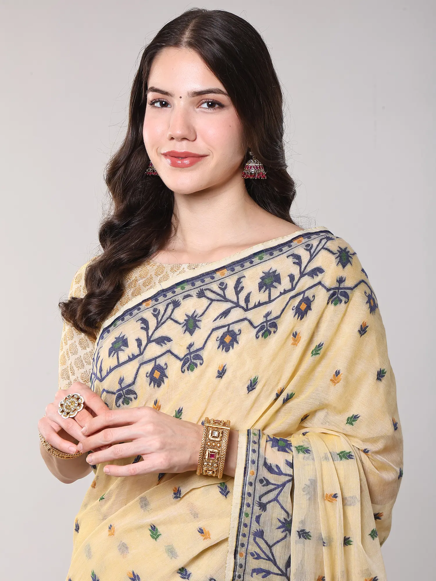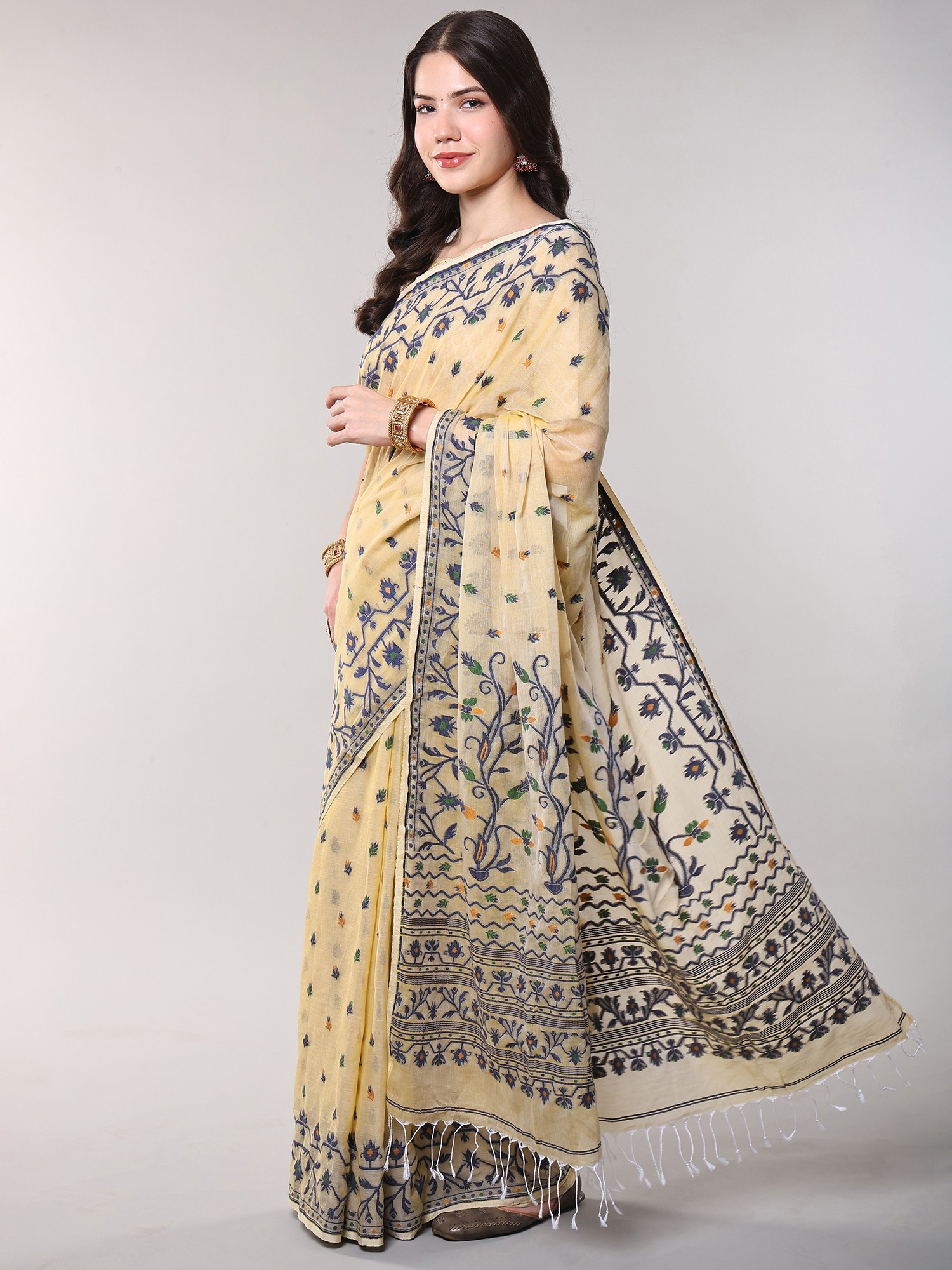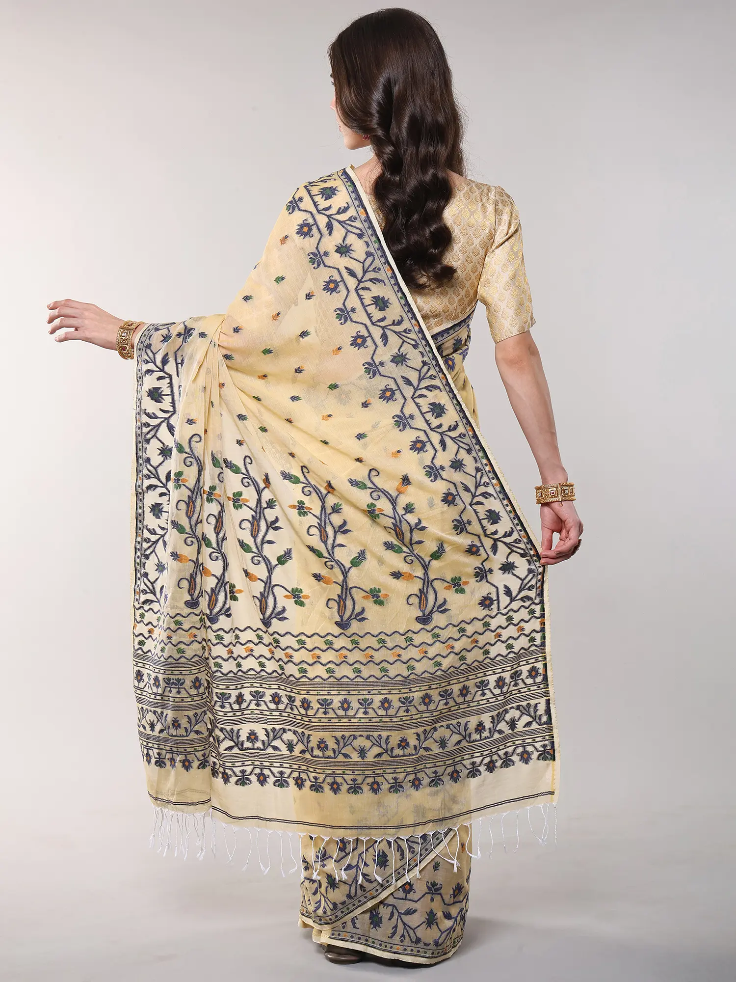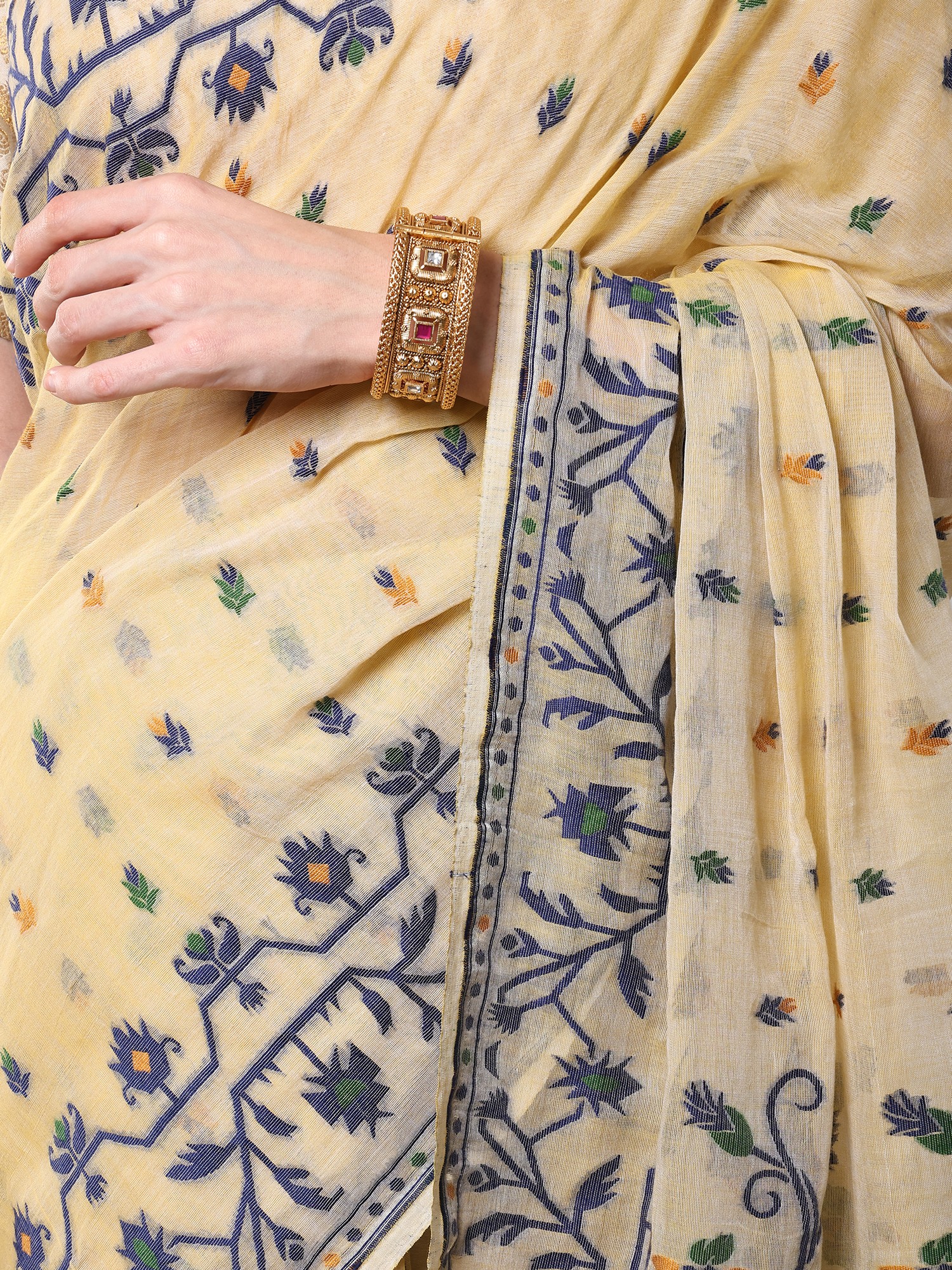Banana-Crepe Pure Cotton Dhakai Jamdani Saree with Woven Bootis from Bengal