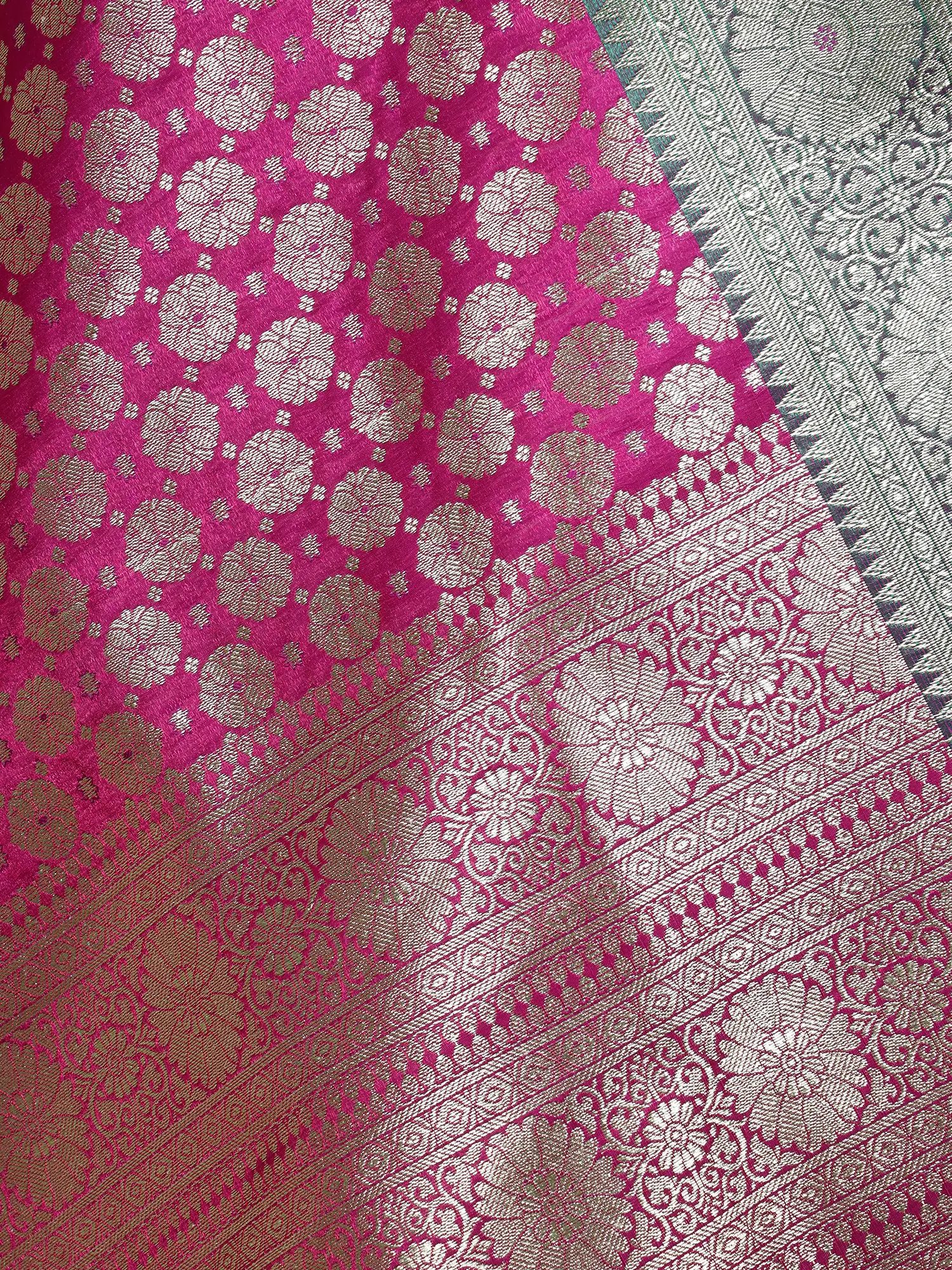 Brocade Banarasi Extra-Wide Dupatta with Woven Rose Meena Motif and Floral Zari Border