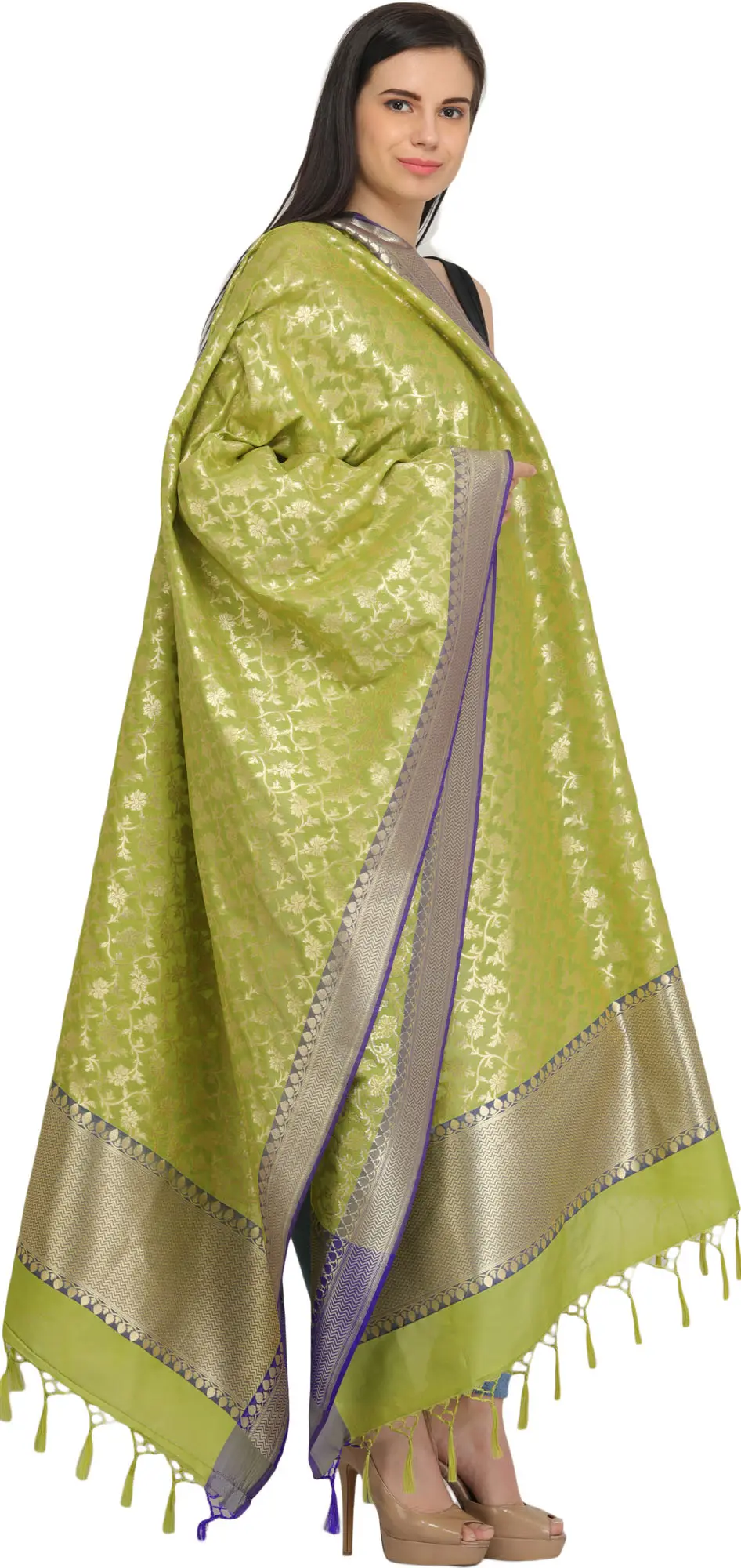 Art Silk Banarasi Dupatta with Zari Woven Floral Motifs