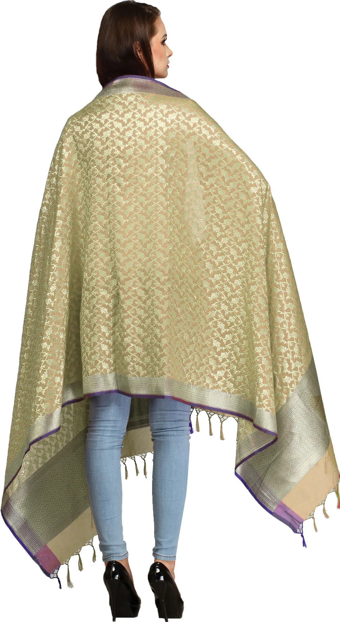 Banarasi Brocaded Dupatta With Floral Weave in Zari Thread