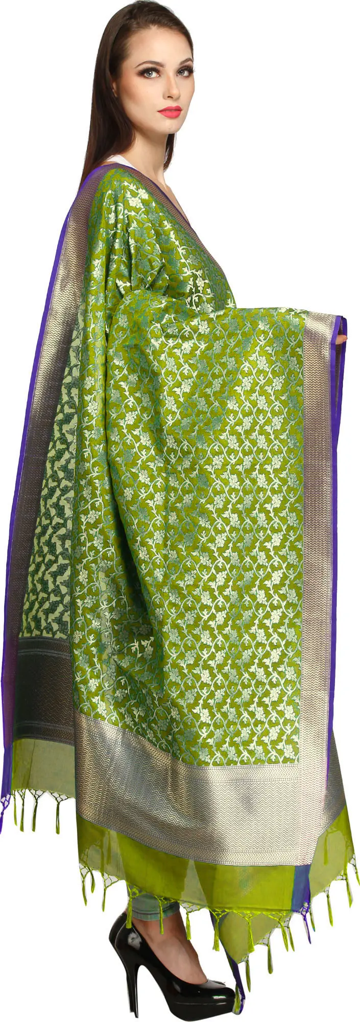 Classic-Blue Banarasi Pure Chiffon Handloom Dupatta with Woven Bootis and Flowers