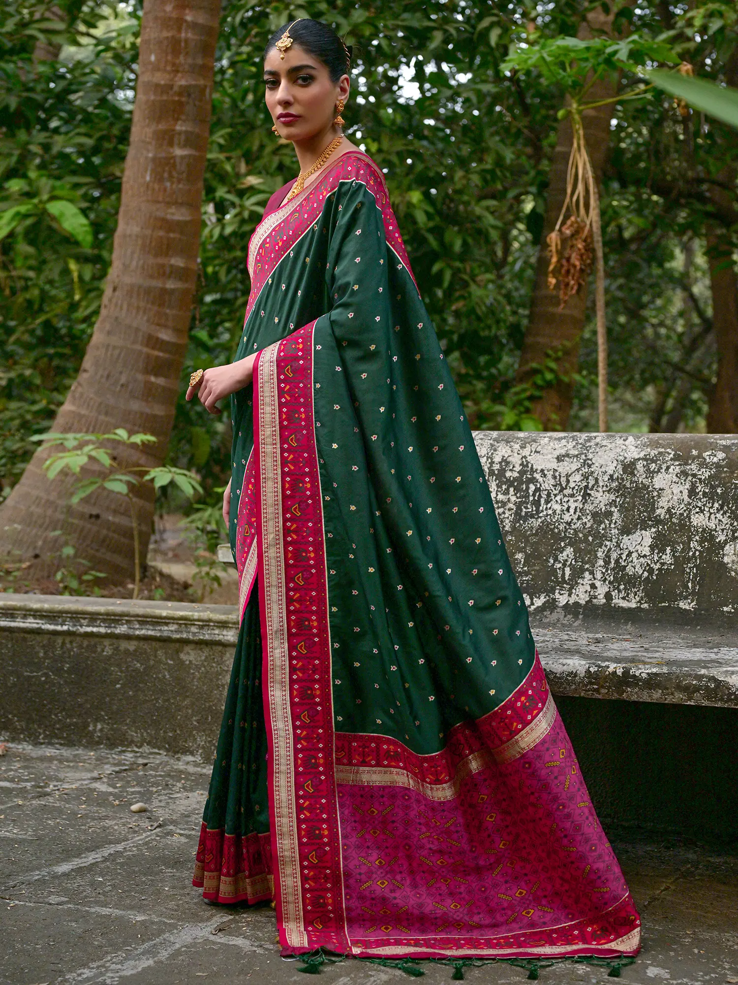 Tarragon Banarasi Silk Saree with Heavy Beaded Mirror Sequins & Thread Work All-over