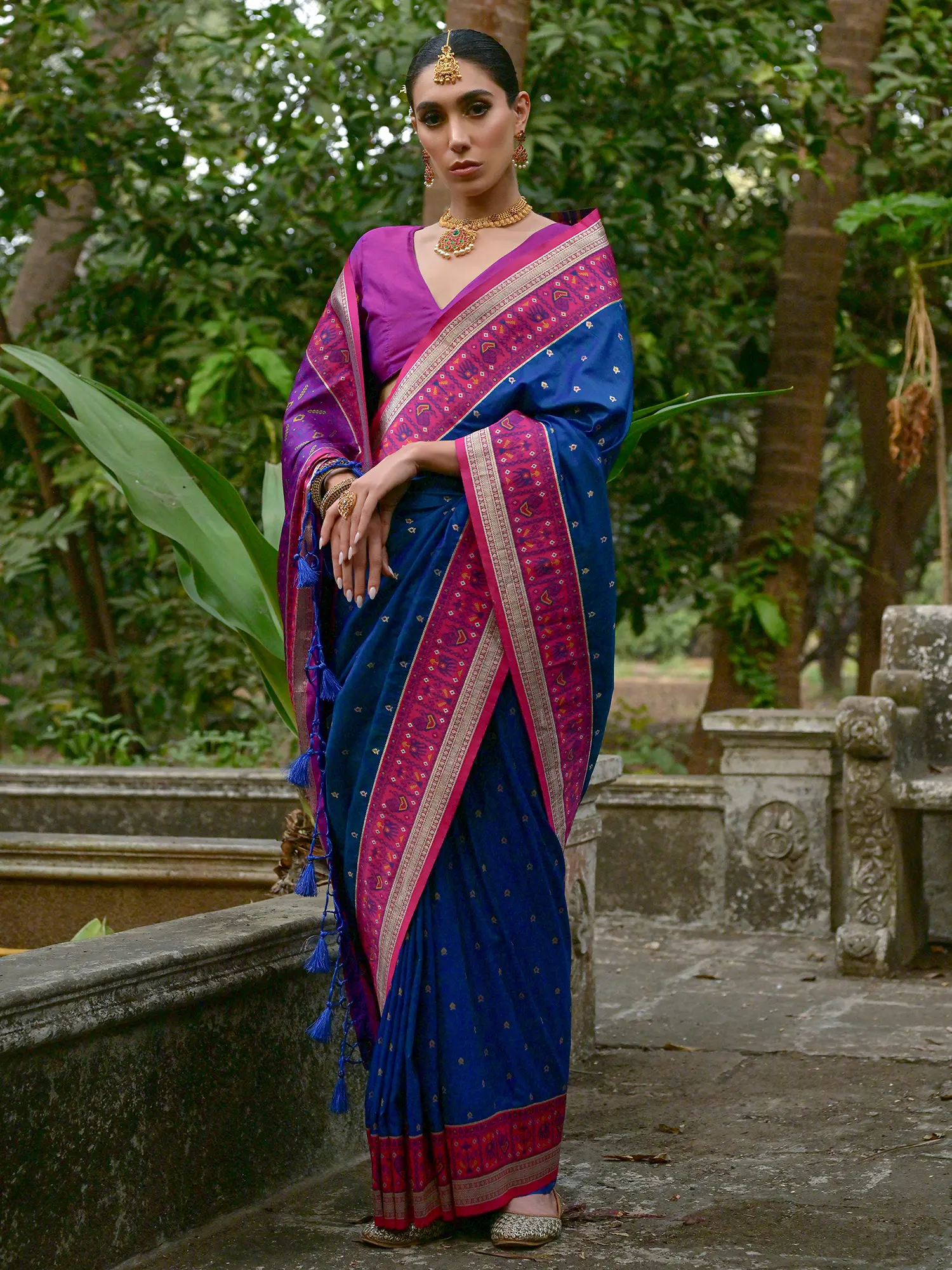 This saree is more than just a garment; it's an investment in artistry and heritage. With its timeless design and exceptional craftsmanship, it is destined to become a cherished heirloom, passed down through generations. Care for this exquisite piece by dry cleaning only to preserve the delicate zari work and the vibrancy of the silk. This allows you to wear and admire it for years to come.