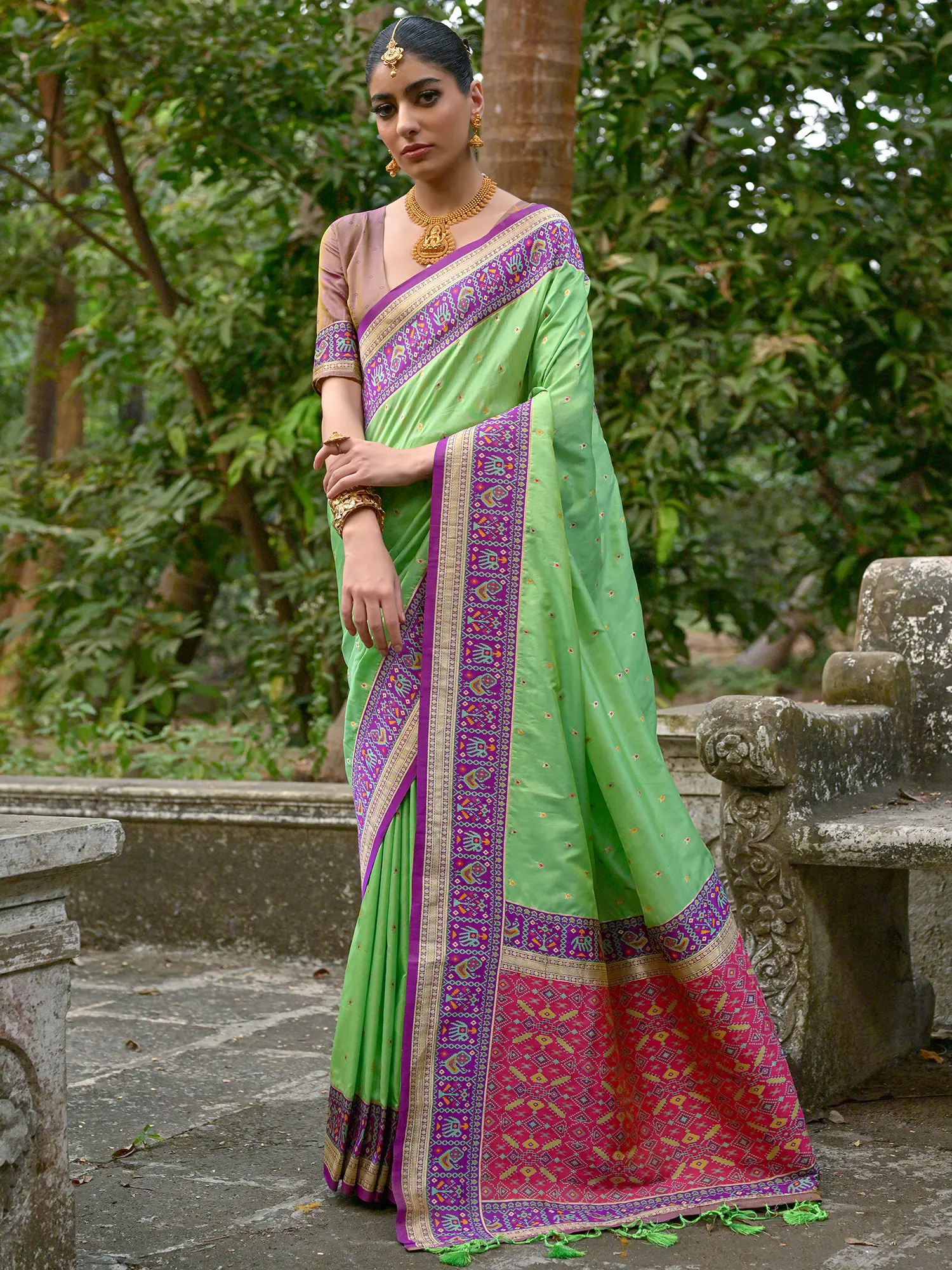 Elegant Wide Border Weaving Work Festive Wear Banarasi Silk Saree With Tassels Pallu