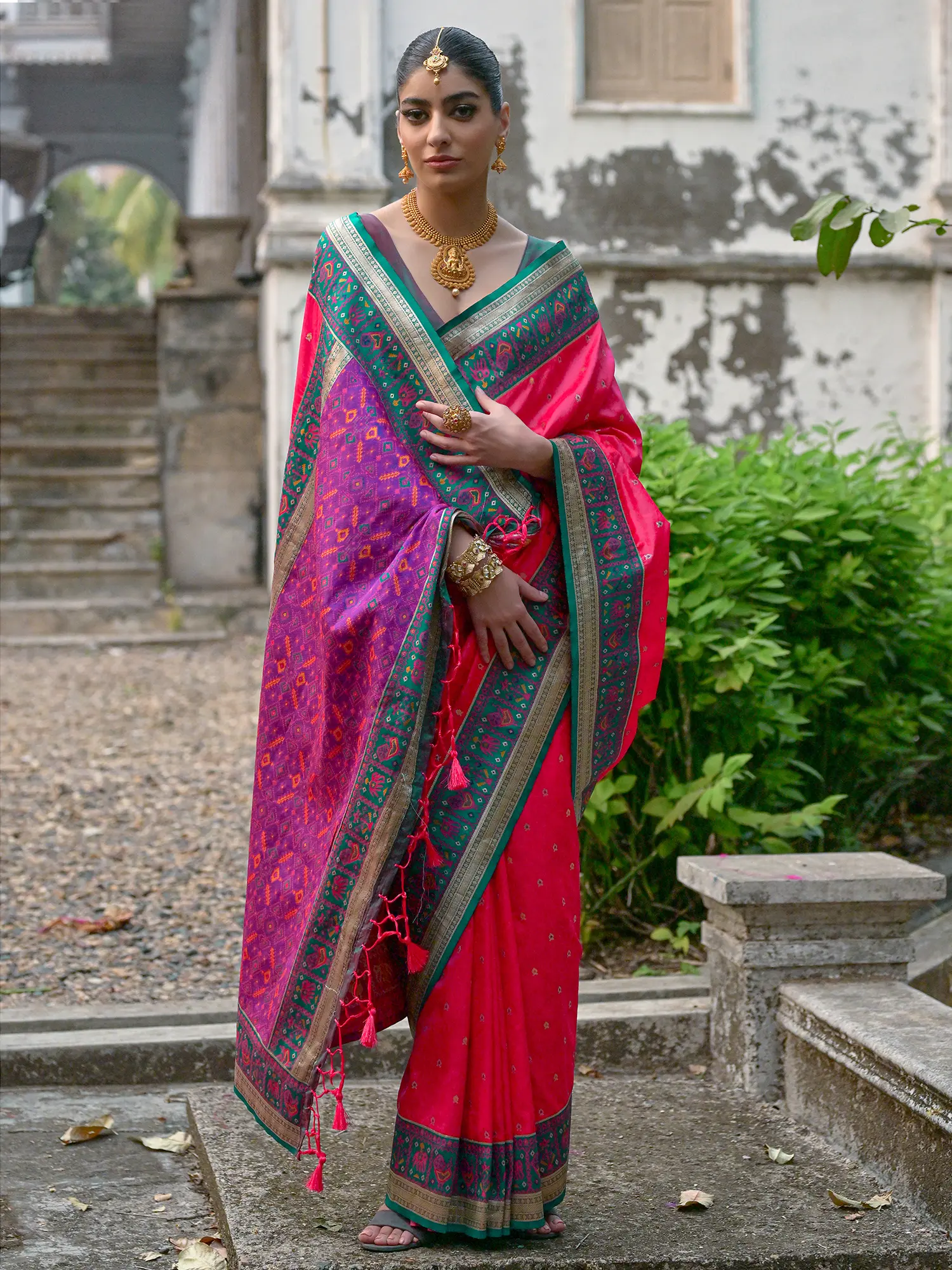Woven Floral Motifs Contrast Border Stunning Banarasi Silk Saree With Blouse