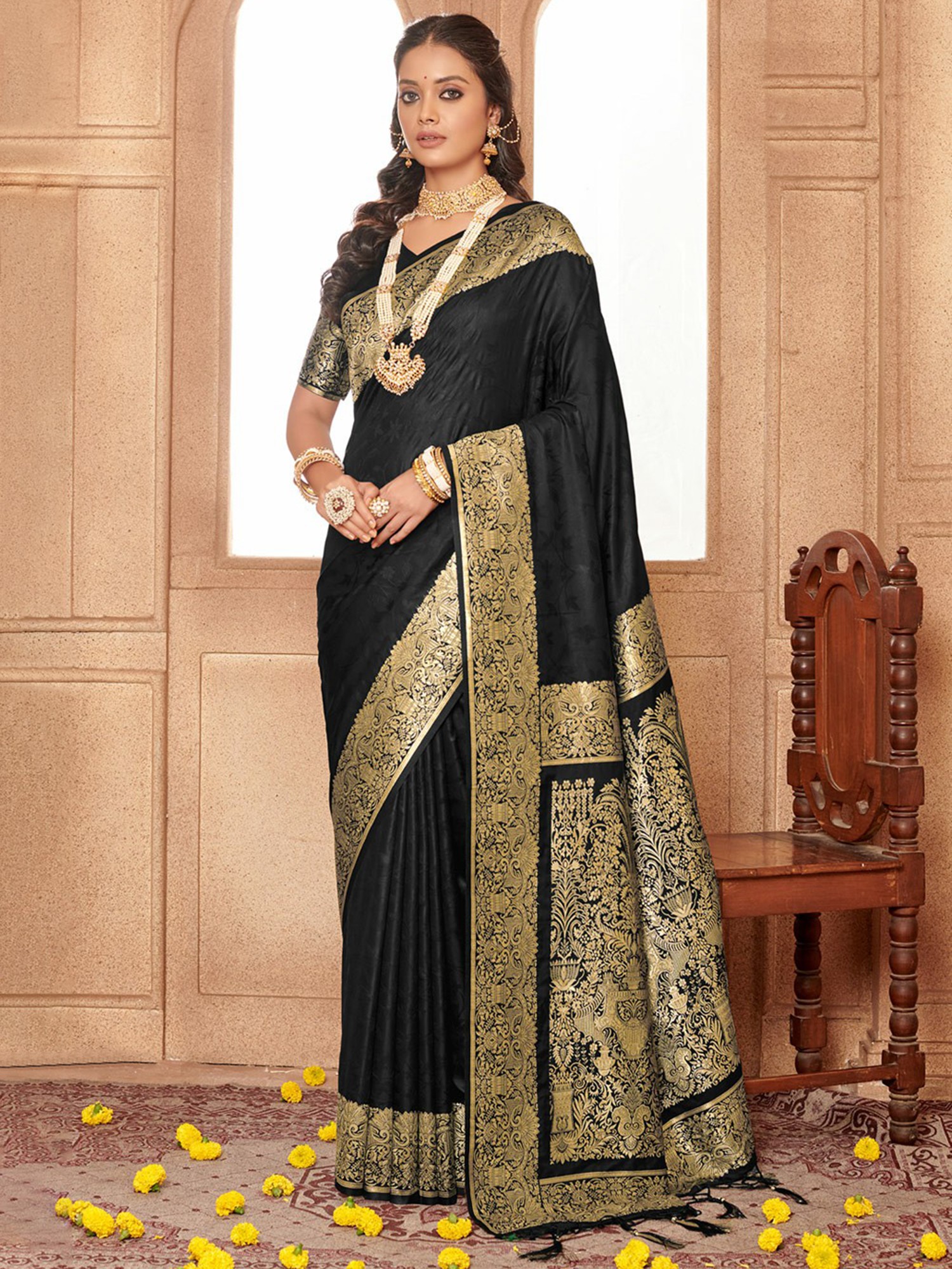 Brocade Banarasi Extra-Wide Dupatta with Woven Rose Meena Motif and Floral Zari Border